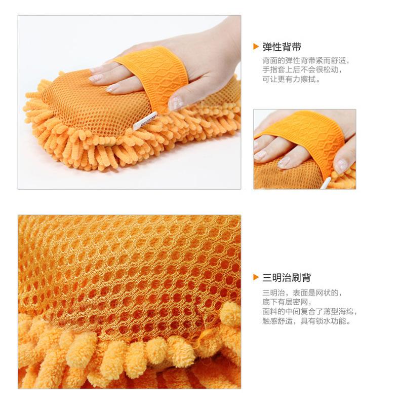 Thickened car wash sponge, high-density chenille, car cleaning sponge, decontamination sponge gloves, coral sp...