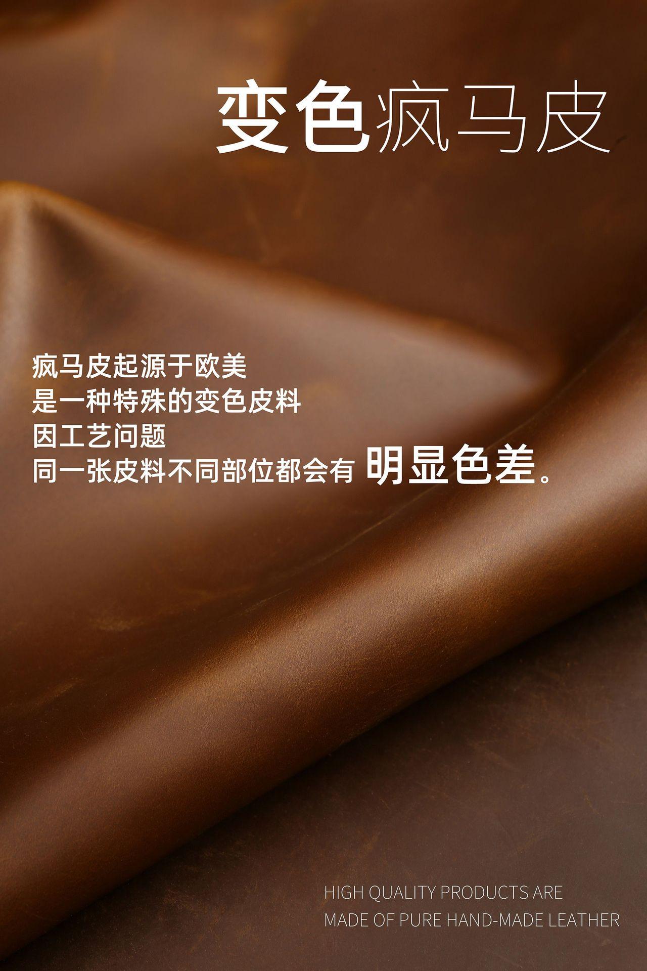 El material es cuero de caballo loco de primera capa, consulte los detalles.