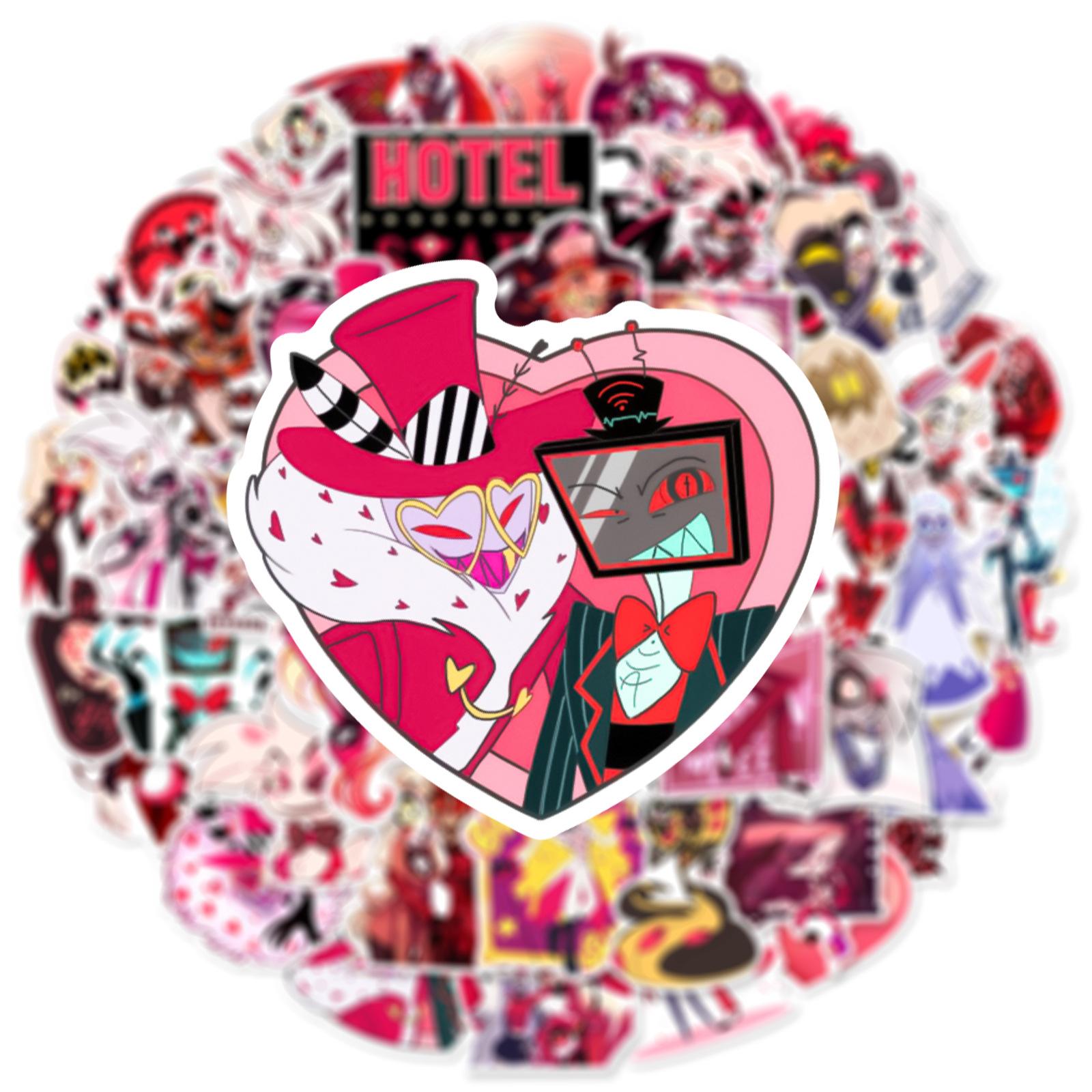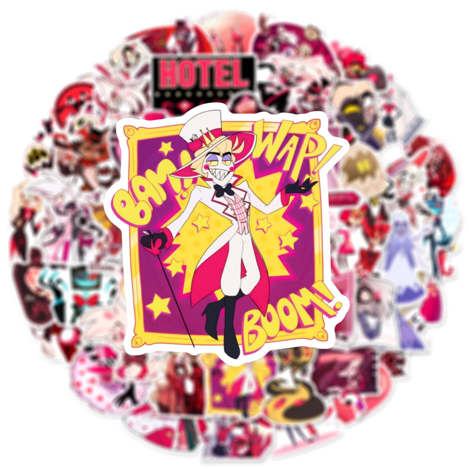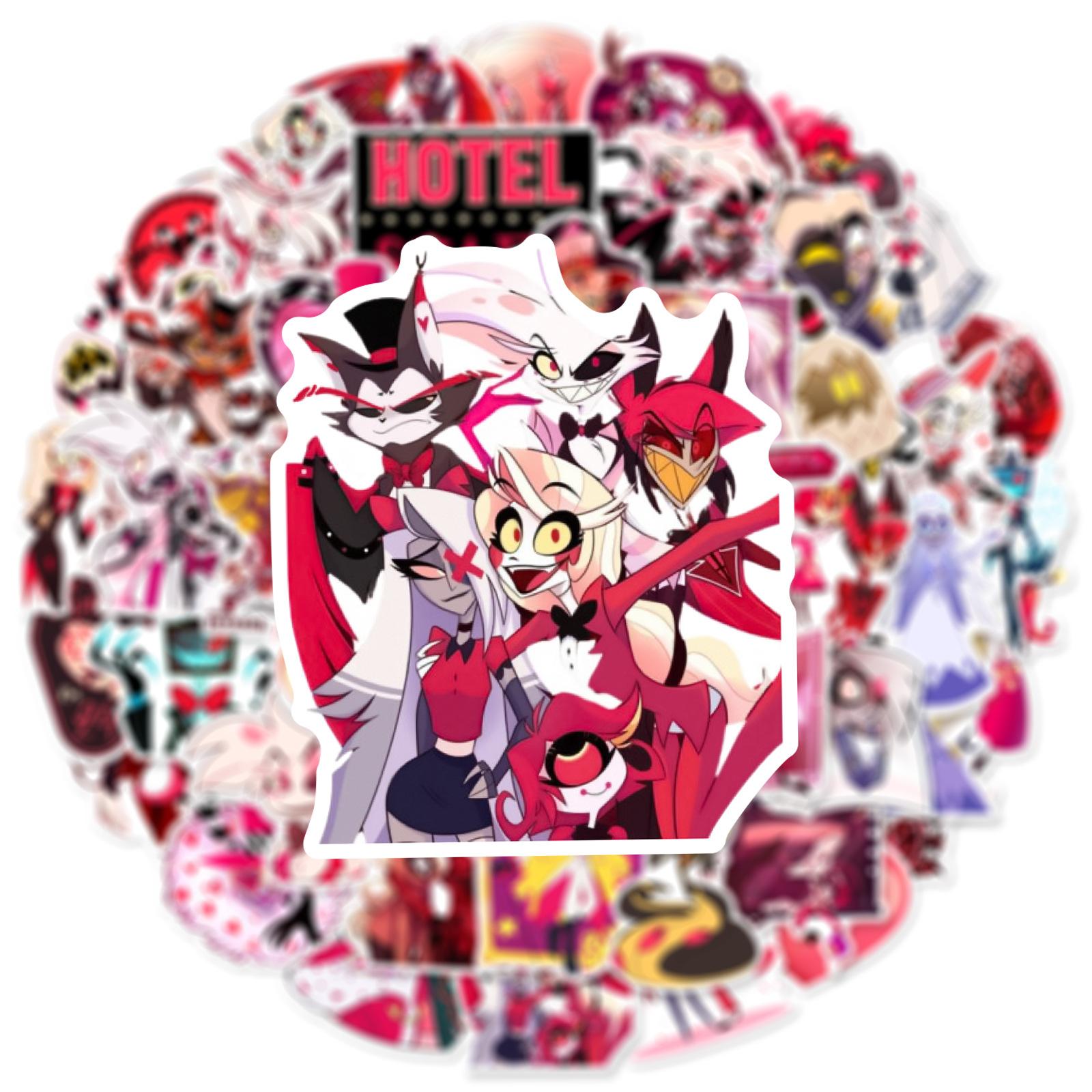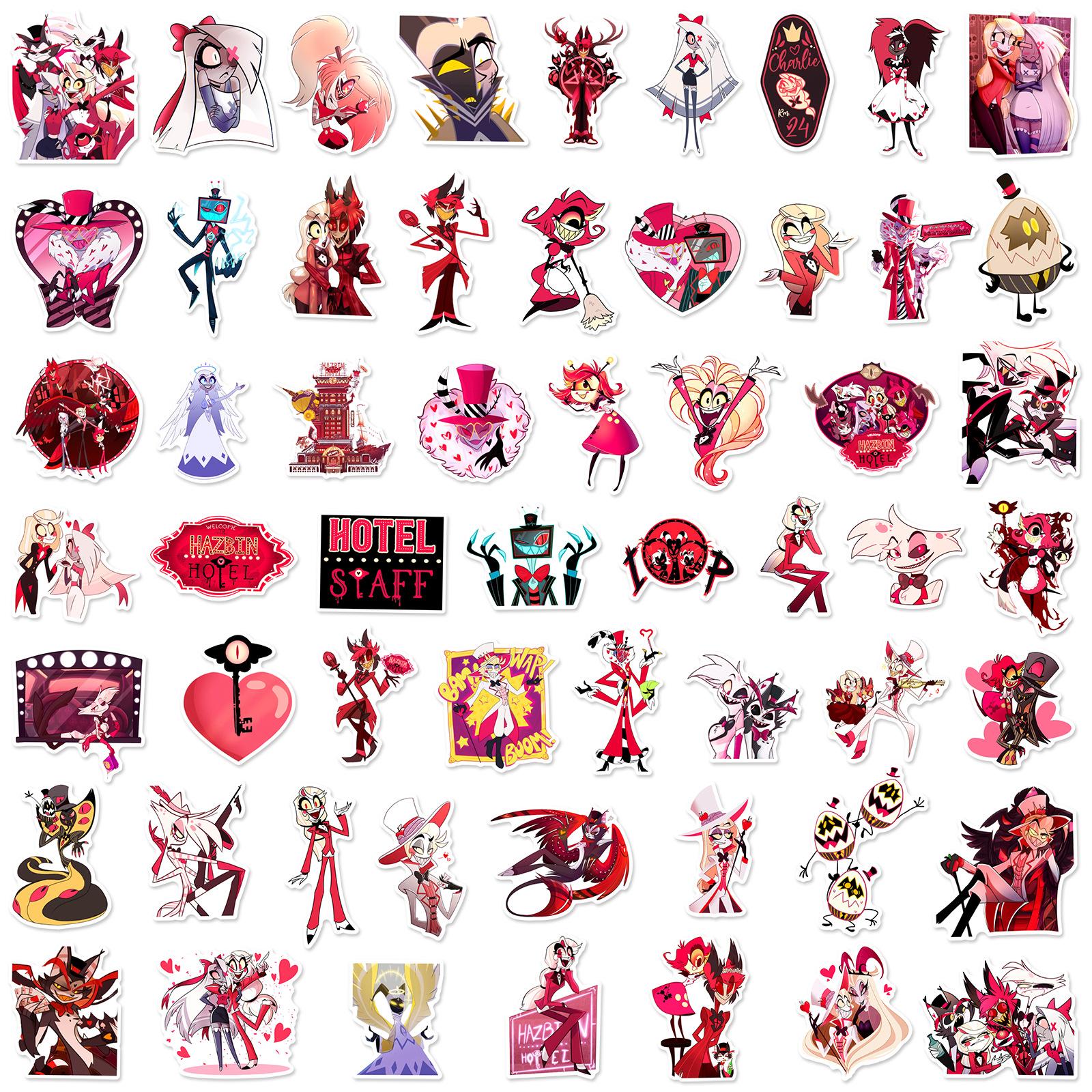 56 Pegatinas Animadas de Hell Inn para Laptop, Equipaje, Libreta, Decoración Impermeable, Pegatinas Creativas Personalizadas