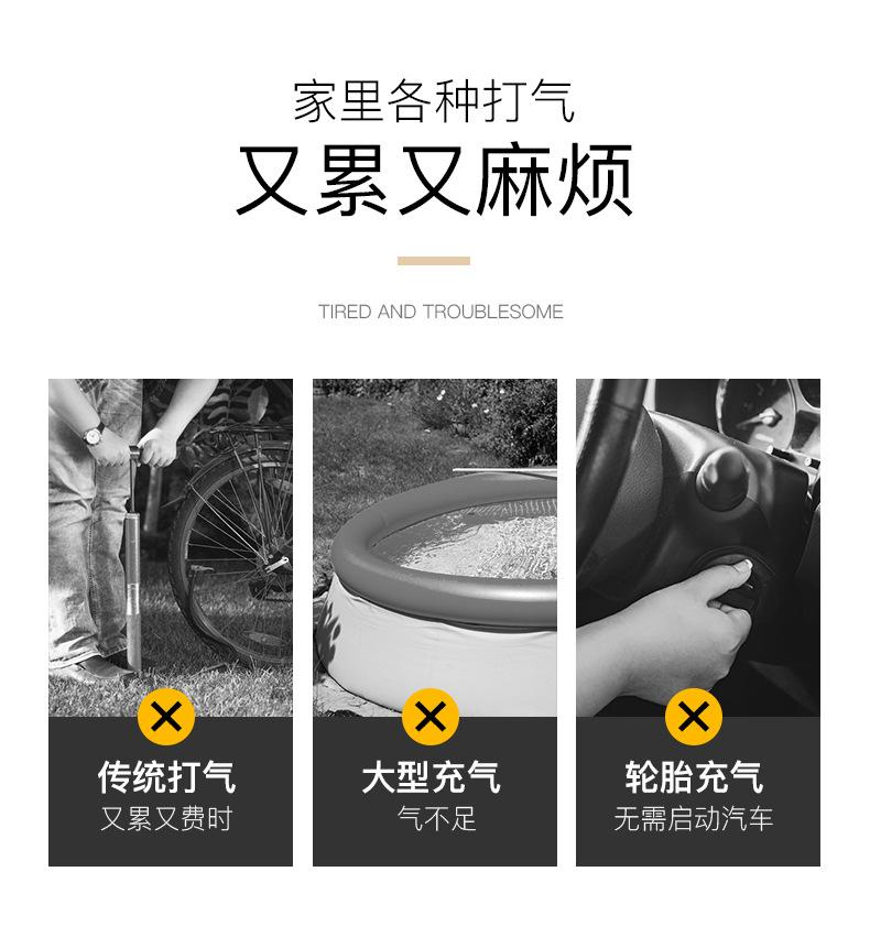 5. Equipado con un juego completo de boquillas de inflado, que se pueden utilizar para inflar neumáticos, botes de goma, cojines de aire, juguetes inflables, pelotas y muchos otros usos.