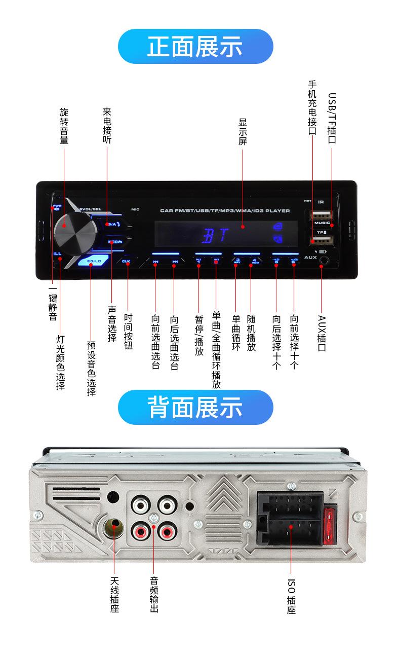 Reproductor de MP3 para Coche Bluetooth Control por Voz Manos Libres Radio FM Carmp3 Control Inteligente por Voz