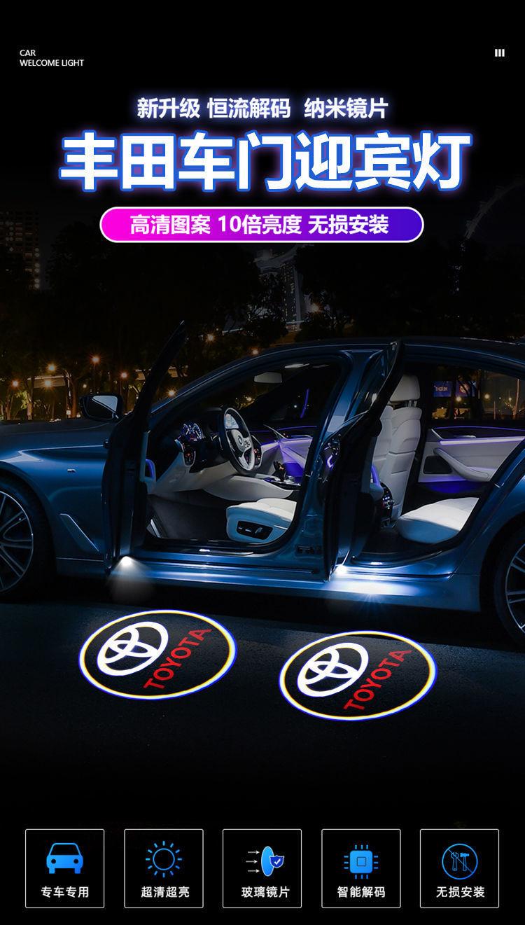 Adecuado para Toyota Luz de bienvenida Camry Highlander Prado Reiz Cool Road Ze Crown Luz de ambiente de puerta de proyección