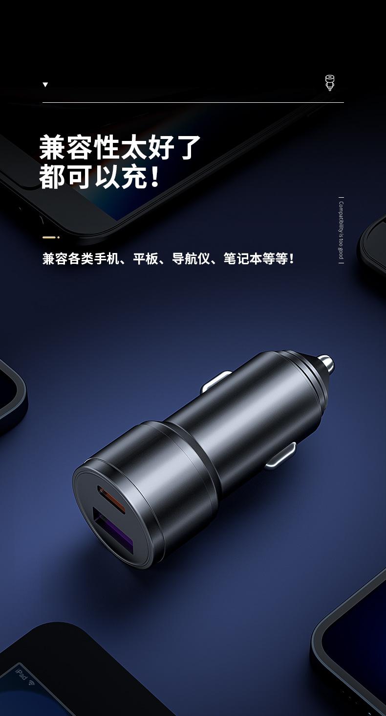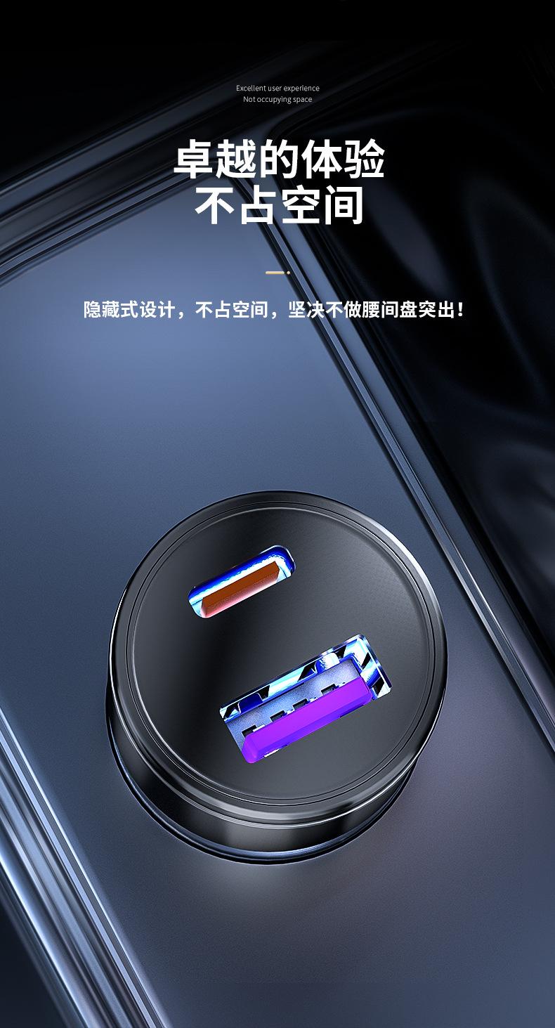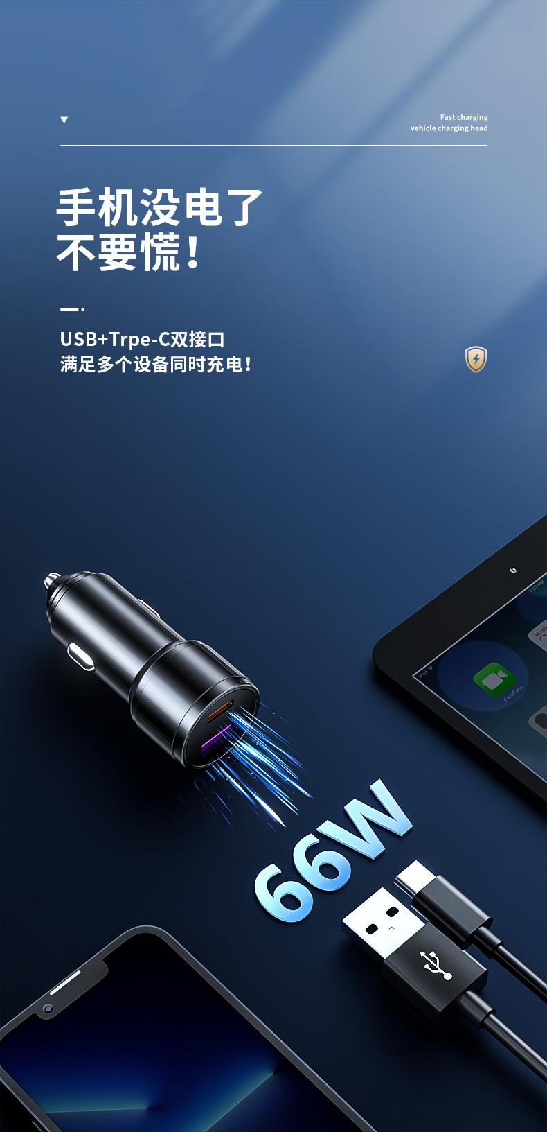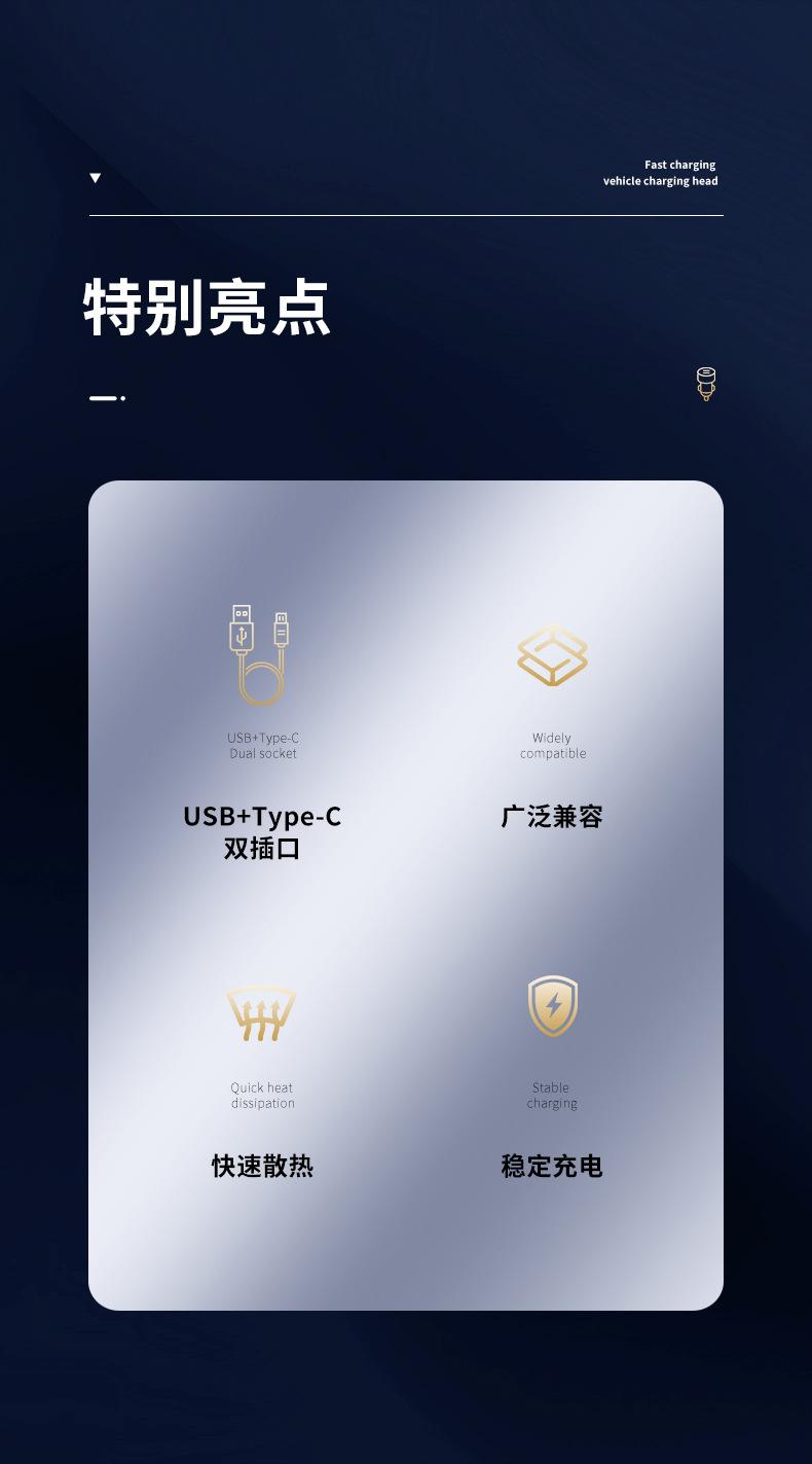 USB Type-C metal car charging head, Dual USB metal car charging head, USB mini car charging head