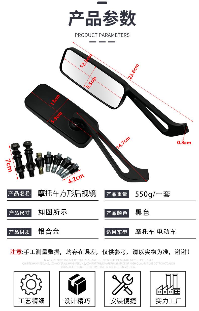 Reflector universal para motocicleta modificado, espejo retrovisor rectangular de aluminio retro, espejo retrovisor Harley