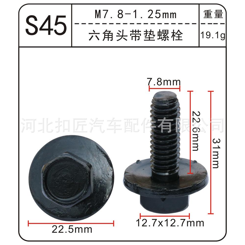 Aplicable a la placa de protección del motor de automóvil universal, perno de cabeza hexagonal con almohadilla M7.8-1.25 mm de apertura S45