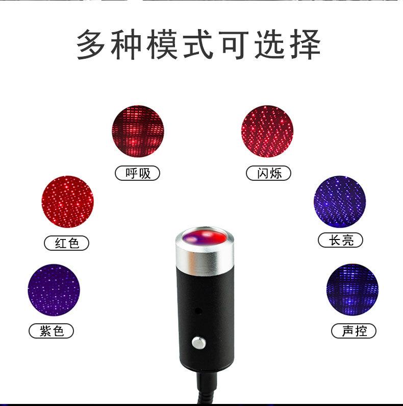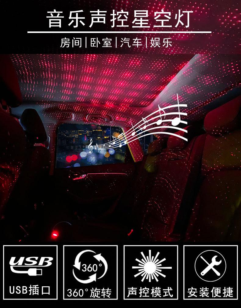 Faro de coche USB luz de estrella láser estrellada coche hogar automático giratorio control por voz luz rítmica
