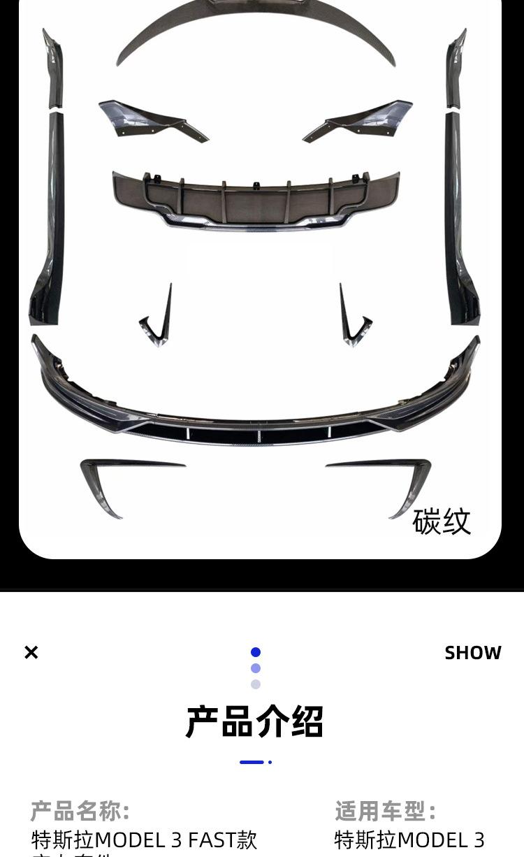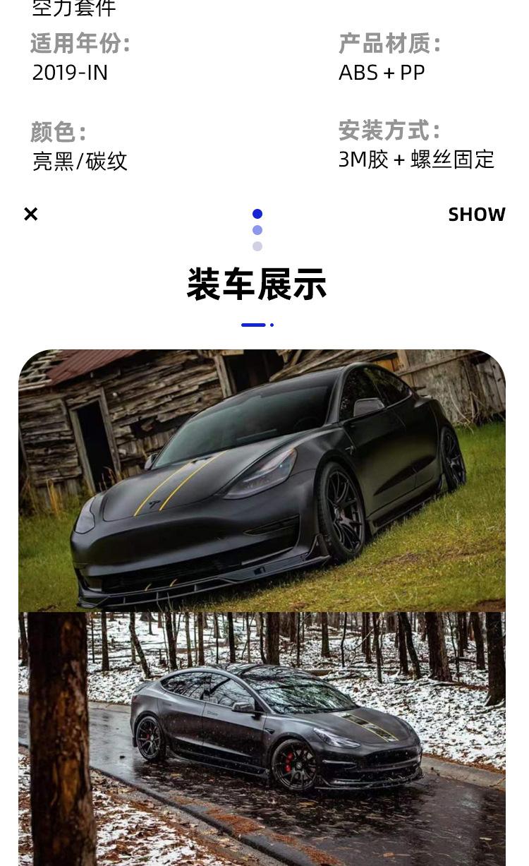 Adecuado para Tesla MODEL3 labio delantero y trasero Model3 cambio RÁPIDO pala delantera falda lateral labio trasero cola cuchillo de viento delantero