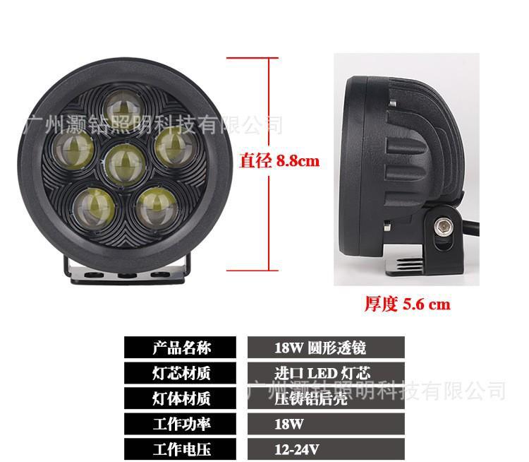 Foco de parachoques delantero para techo de vehículo todoterreno con lente redonda de 18 W