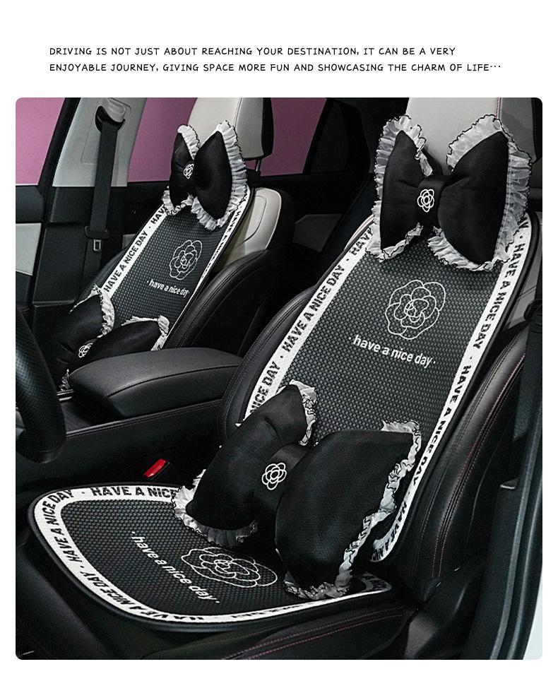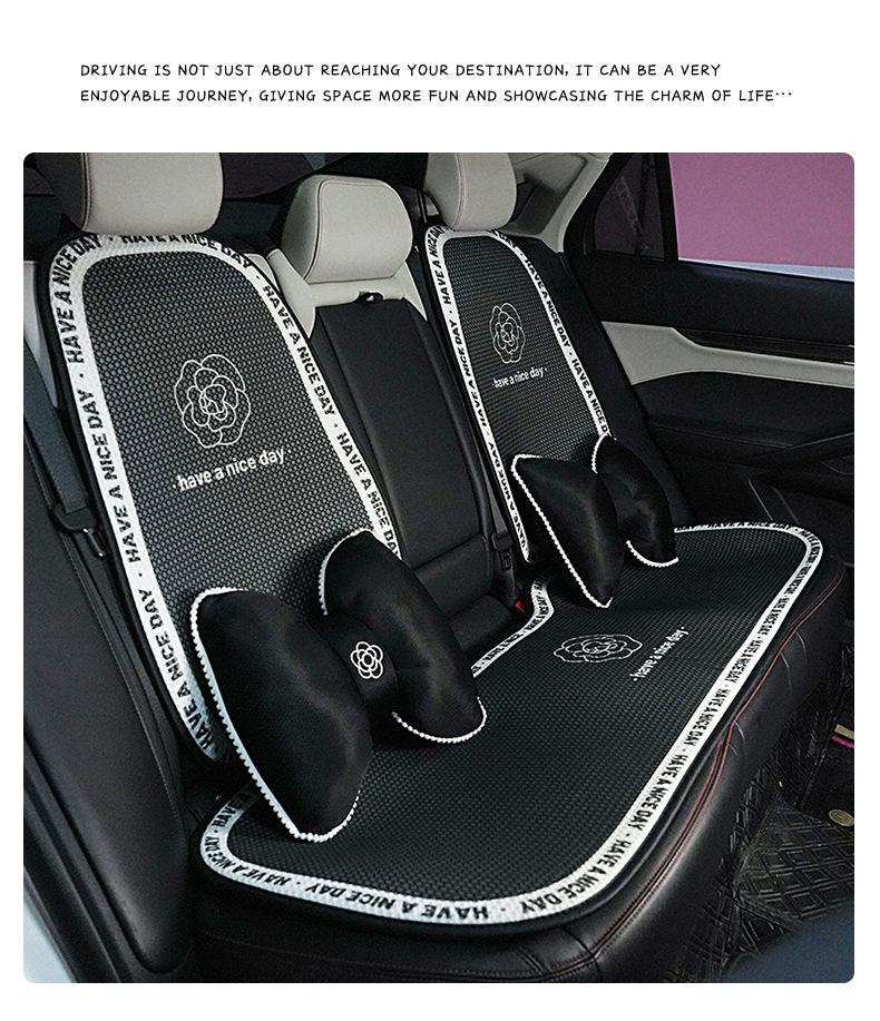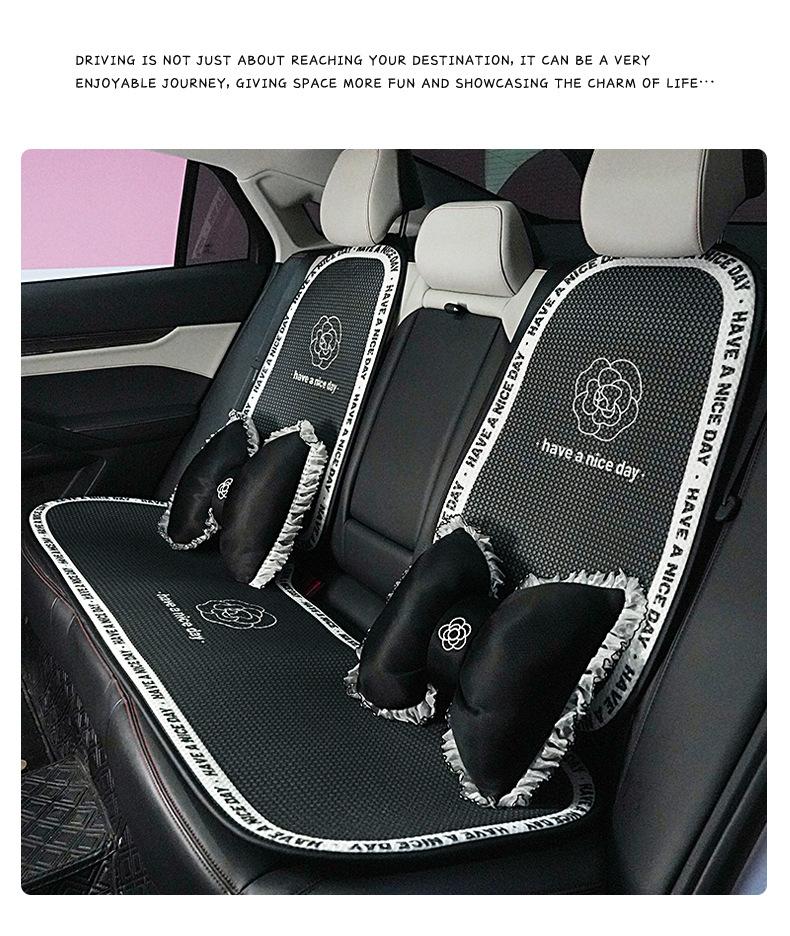 Cojín para Asiento de Coche, Hermoso Cojín para Asiento de Coche Camelia Negro, Sencillo Cojín para Asiento de Coche de Seda de Hielo Fresco para Verano Transpirable Antideslizante