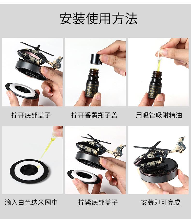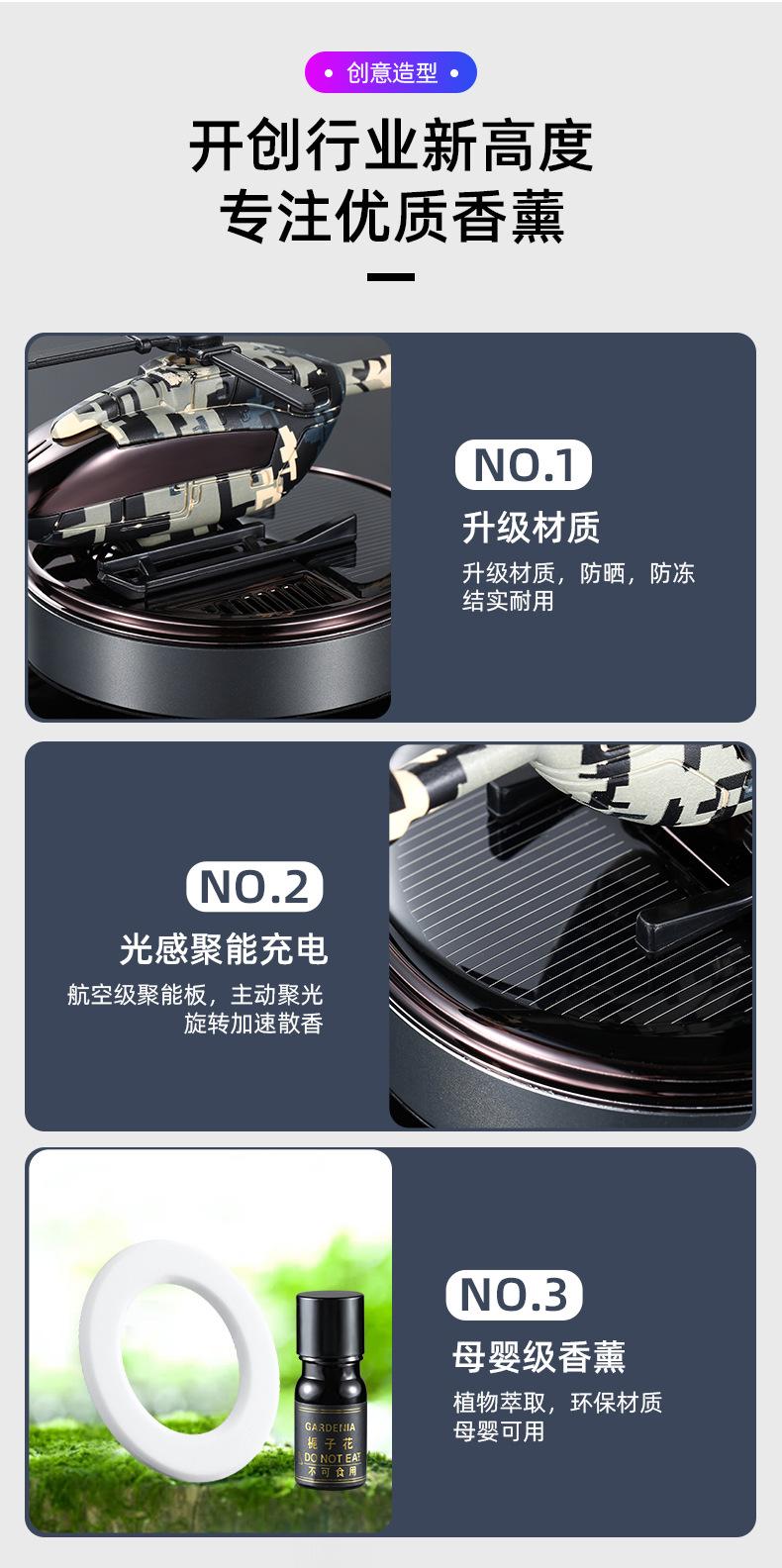 Compra Decoración de avión solar para coche, consola central giratoria de camuflaje, fragancia ligera duradera, desodorante aromaterapia para coche, decoración al por mayor en Joom.pro