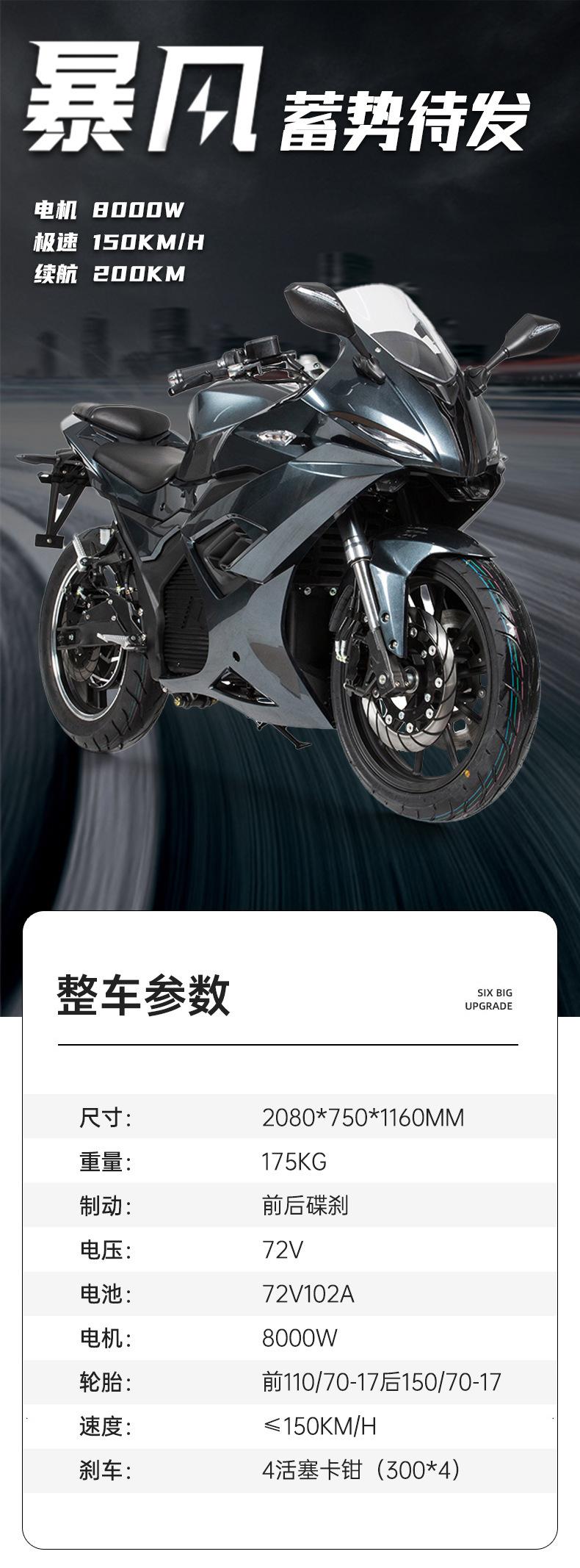 Motocicleta eléctrica Storm de 72 V, de larga duración, scooter de alta potencia, para exportación de comercio exterior, con horizonte de vehículos eléctricos.