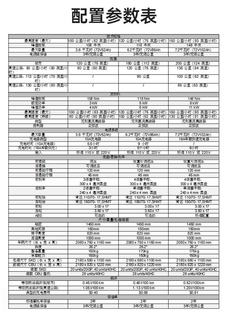 Low-configuration version 72V52A, High-end 72V86A, Top version 72V102A