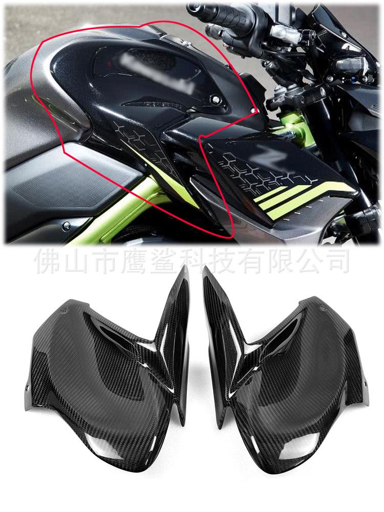 Adecuado para la cubierta de la placa lateral delantera del tanque de combustible de fibra de carbono modificada para motocicleta Kawasaki Kawasaki Z900, accesorios de carcasa