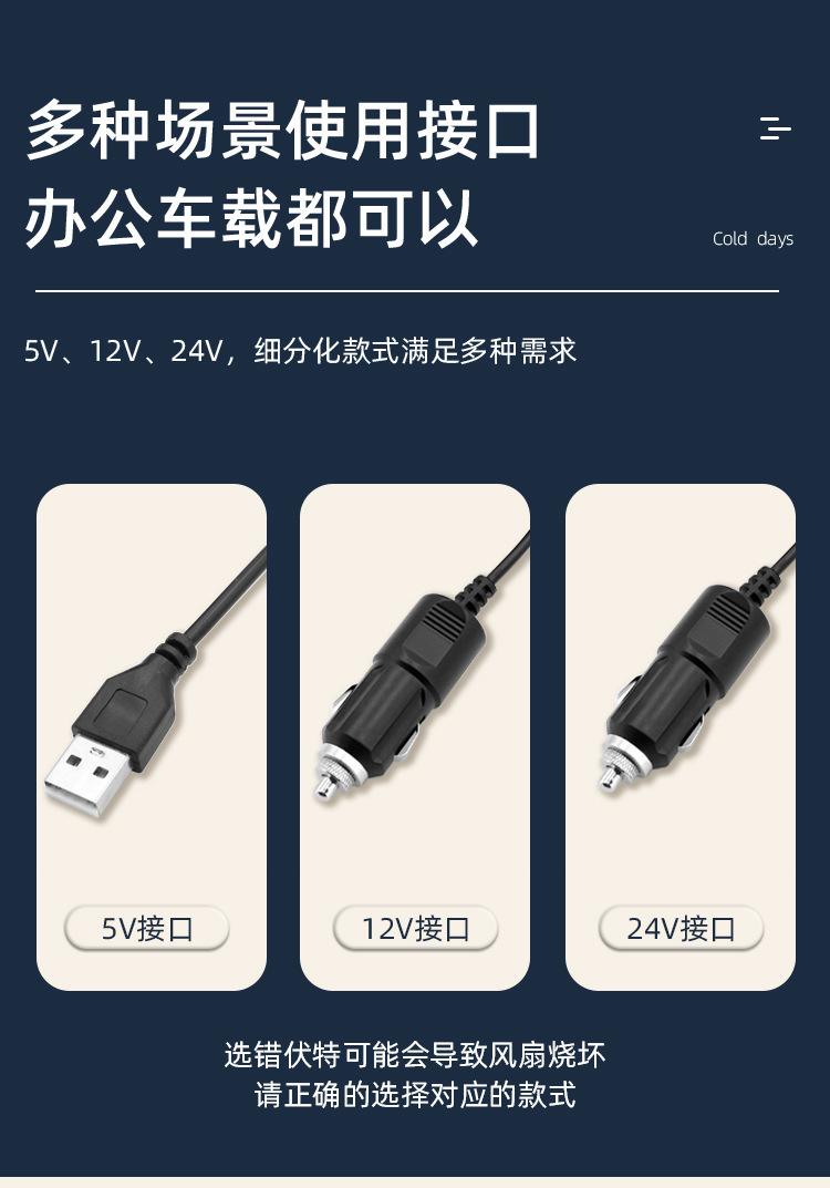 【F410】Ventilador de doble cabezal para coche-USBpago