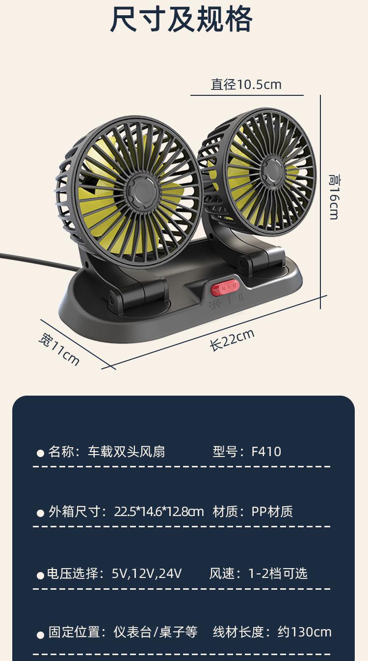 【F410】Ventilador de doble cabezal para coche-12 Vpago