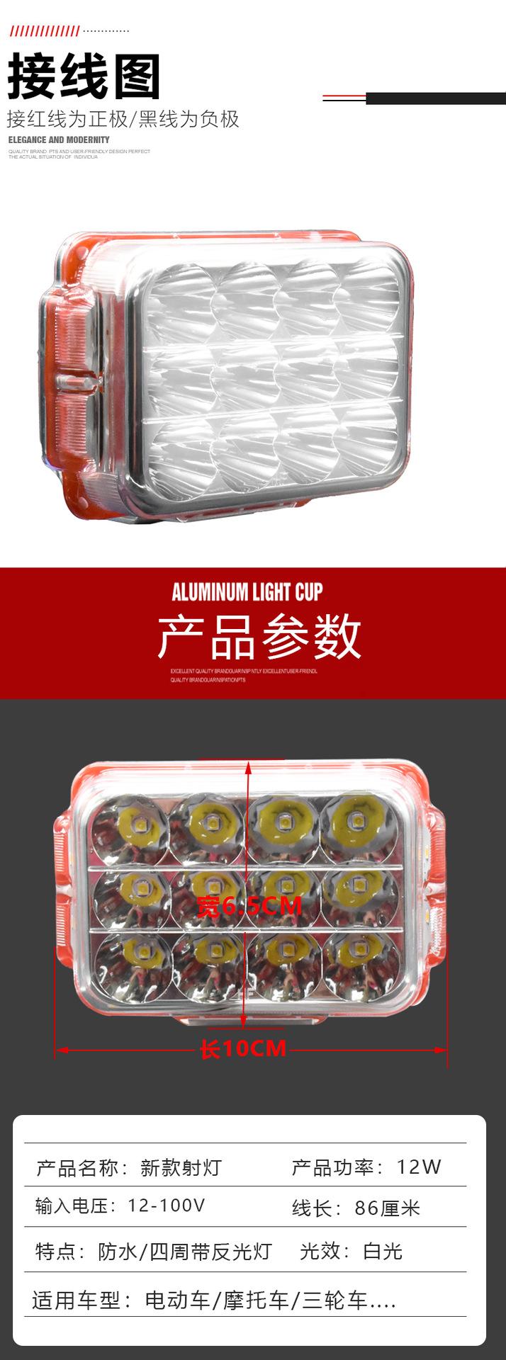 Modificación de lámpara de motocicleta eléctrica externa súper brillante bicicleta triciclo coche de batería faro luz fuerte foco LED 12V