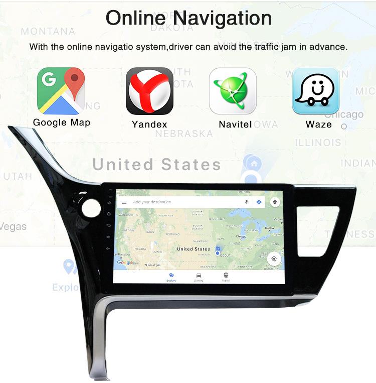 Aplicable a Toyota Corolla 14-18, navegador de péptido izquierdo, imagen de marcha atrás, Android inteligente, pantalla grande, GPS