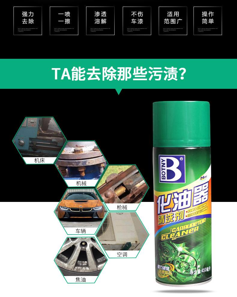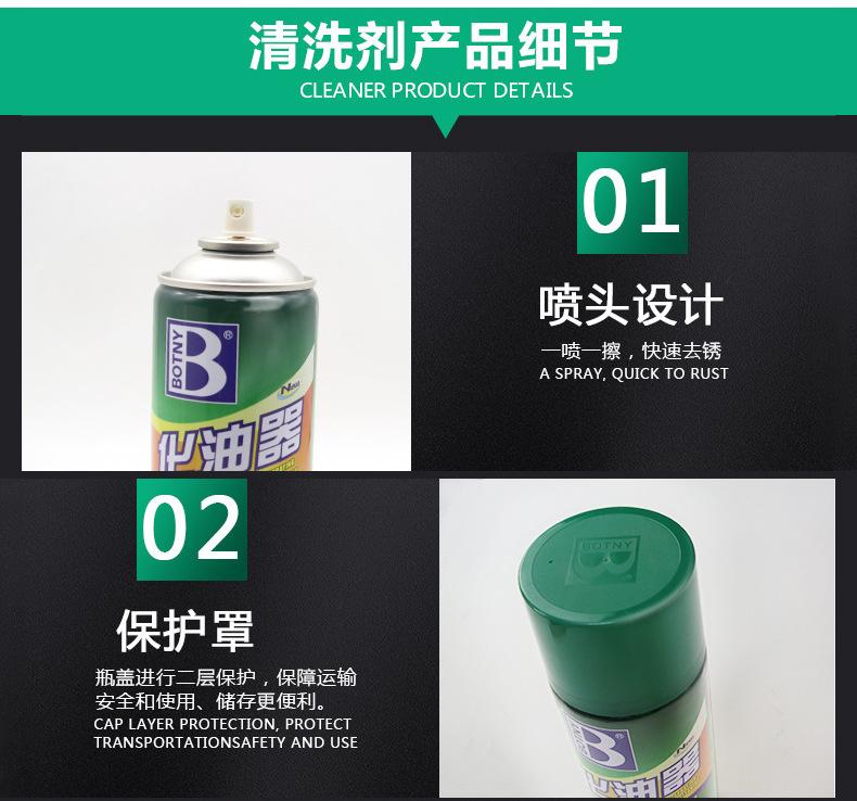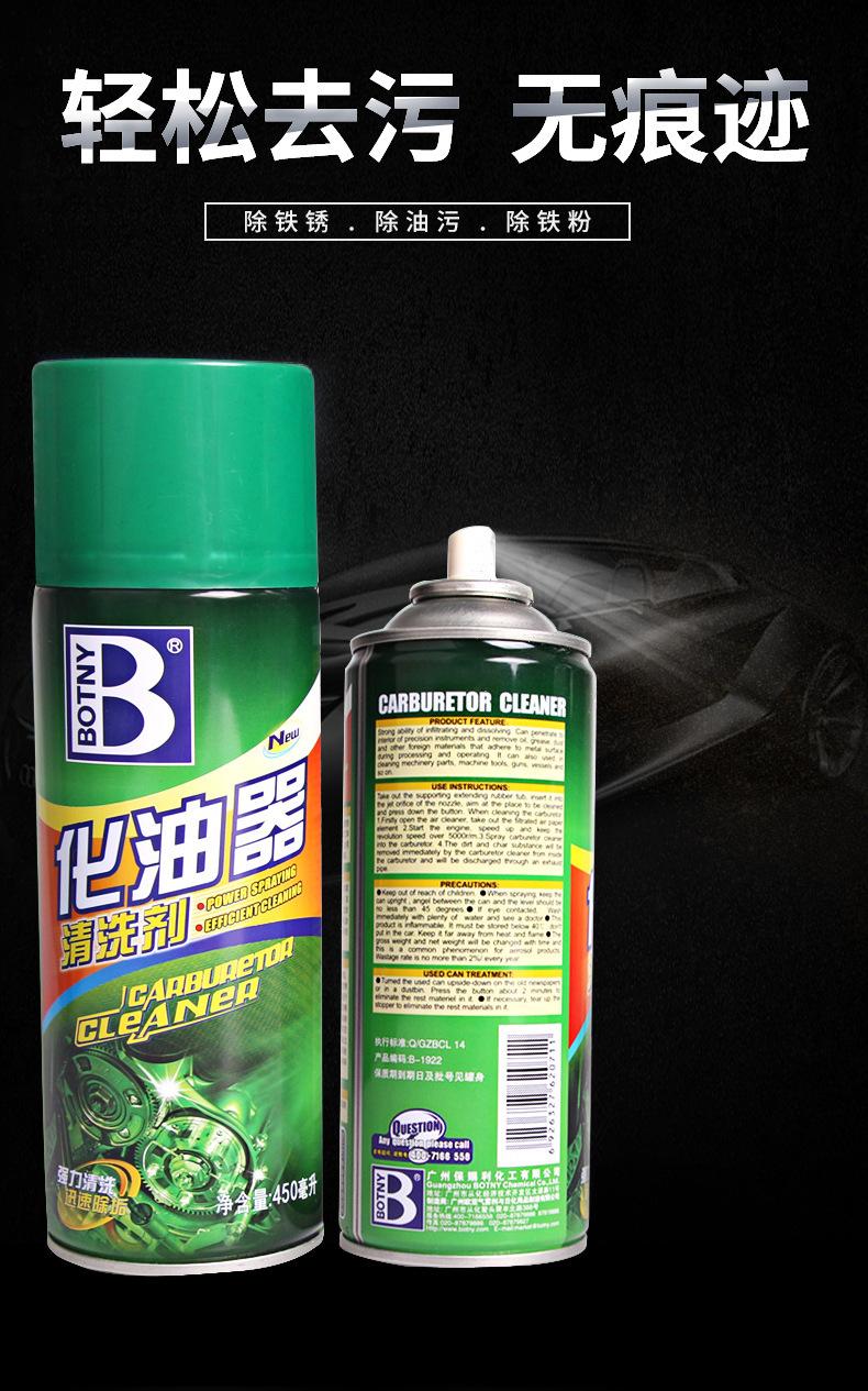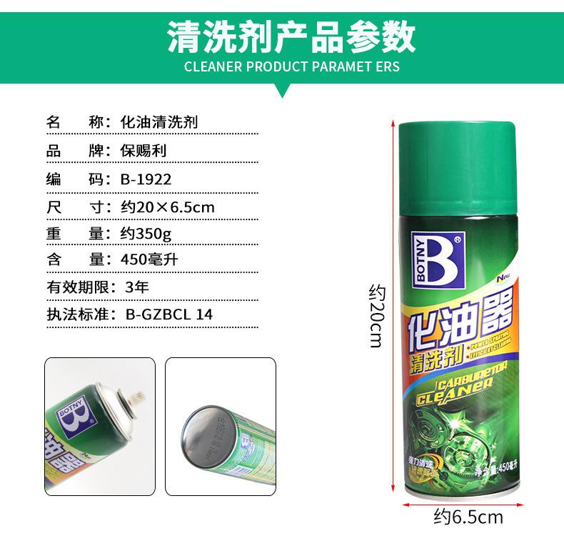 El Limpiador de Carburador Botny, altamente confiable, ayuda a limpiar la suciedad, el coloide y los depósitos de carbón dentro y fuera del carburador. También se utiliza para la limpieza profesional de diversas piezas mecánicas y campos industriales.