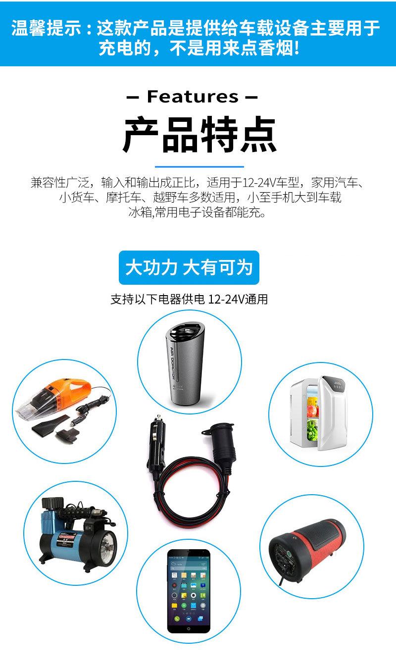 Encendedor de cigarrillos cable de alimentación para coche de 3 m