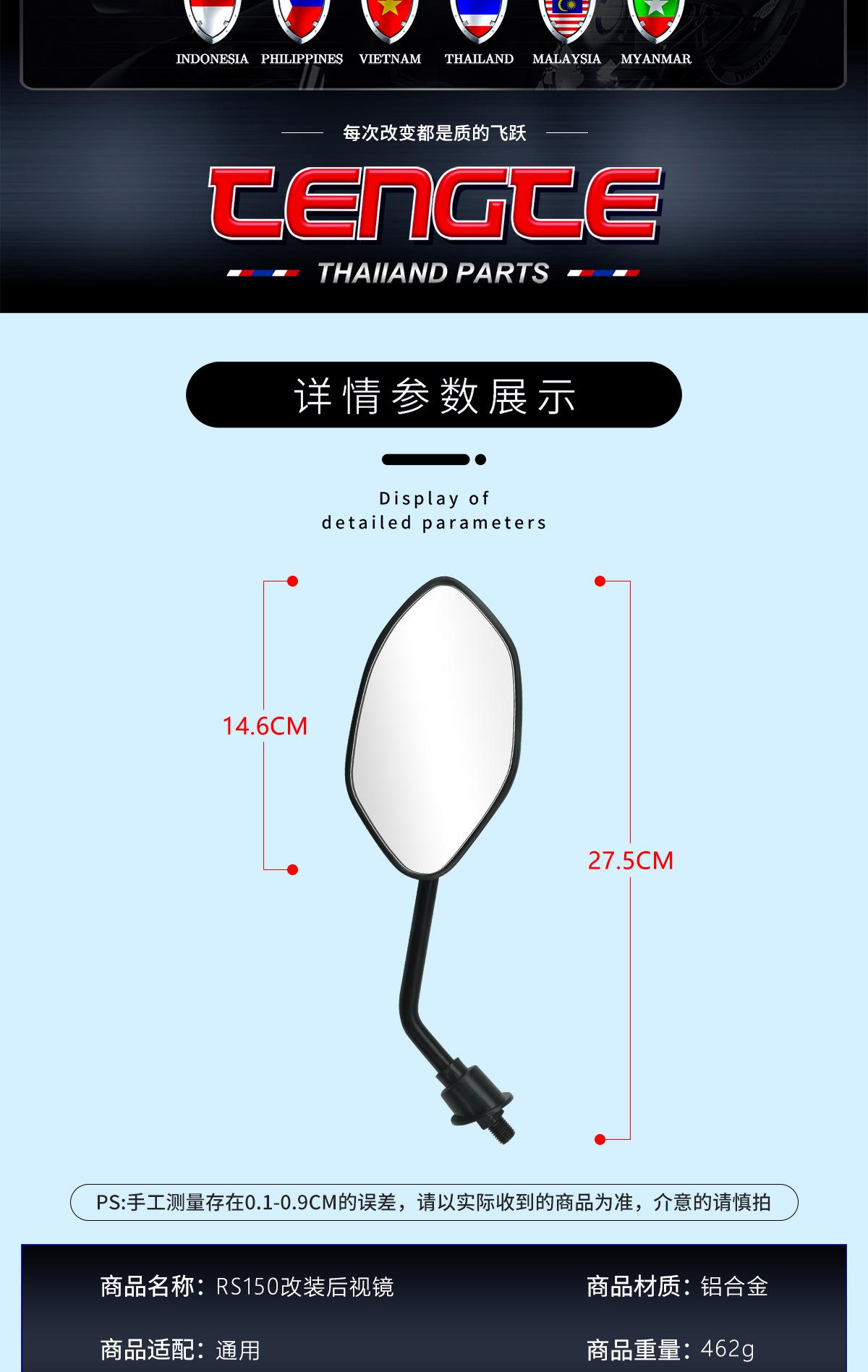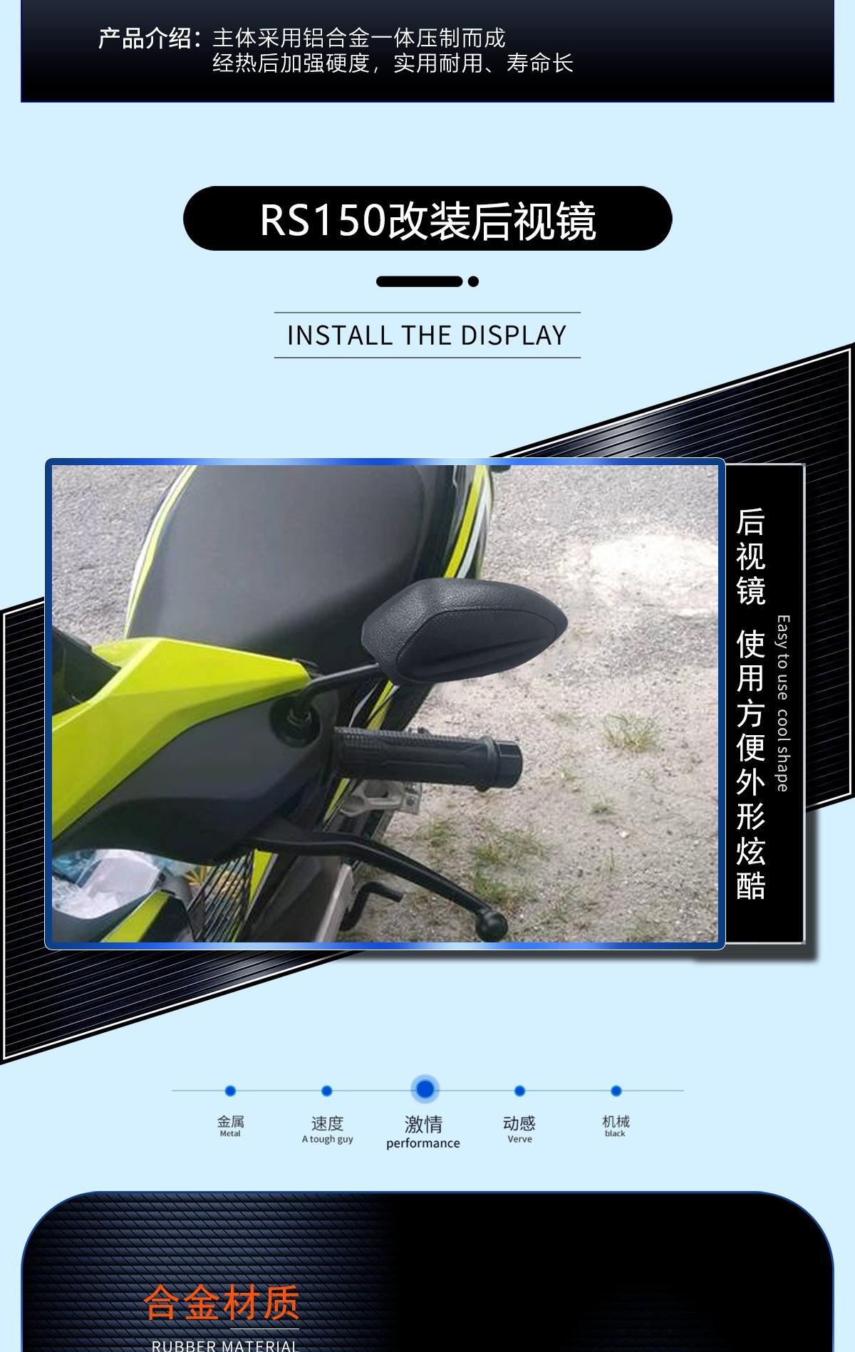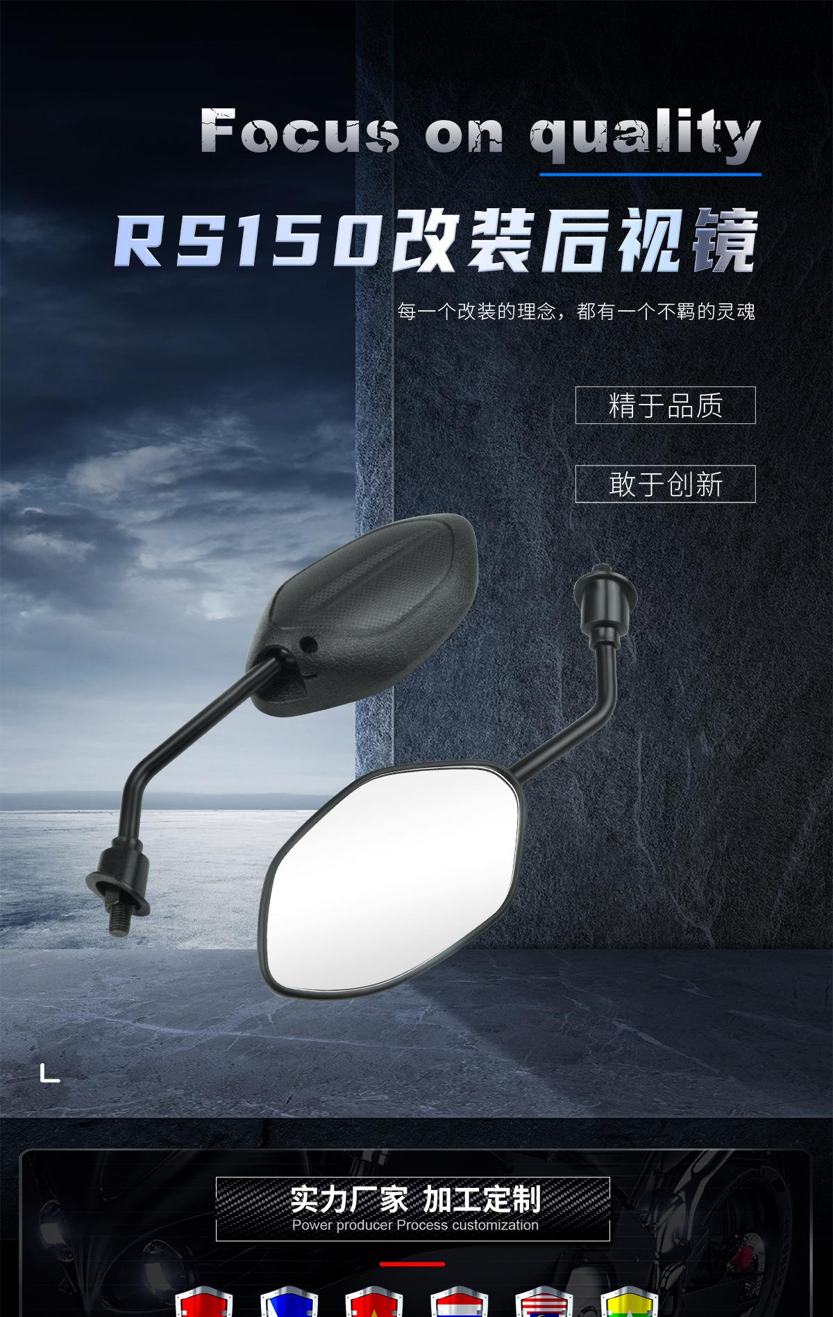 Espejo retrovisor modificado para motocicleta, adecuado para el modelo RS150, espejo retrovisor con varilla de aluminio, espejo emisor de luz, espejo retrovisor de marcha atrás