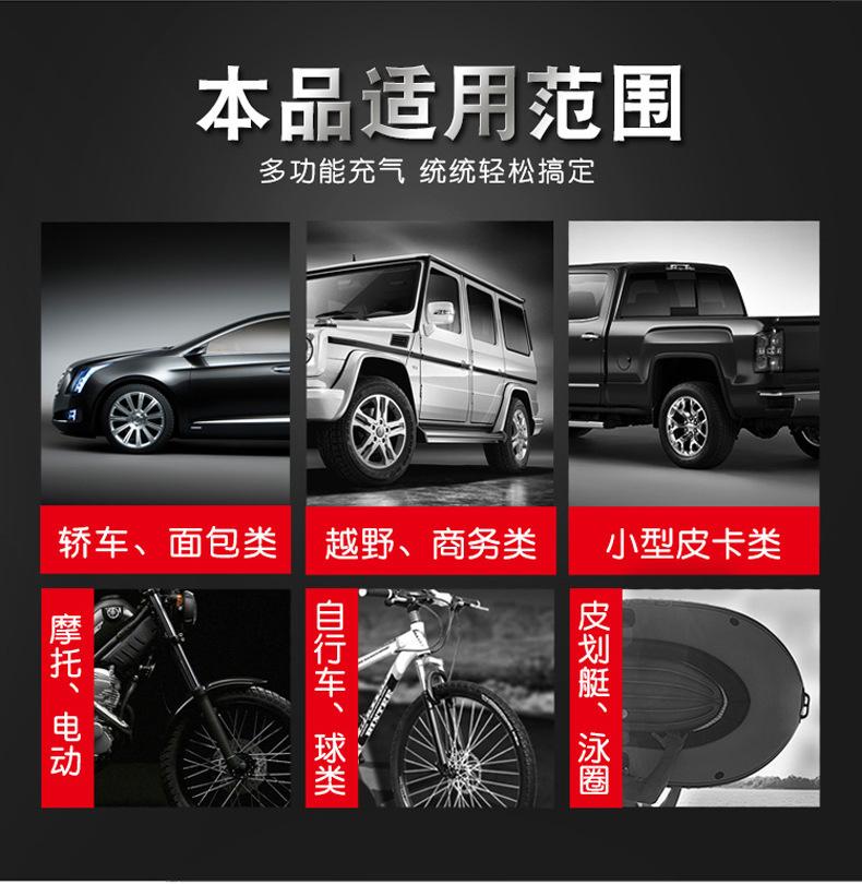 1. Esta máquina es adecuada para todos los neumáticos de automóviles de 12 V, especialmente 4x4, autobuses medianos, camiones de menos de 2 toneladas, automóviles de lujo y otros neumáticos más grandes, con gran volumen de aire e inflado rápido.
