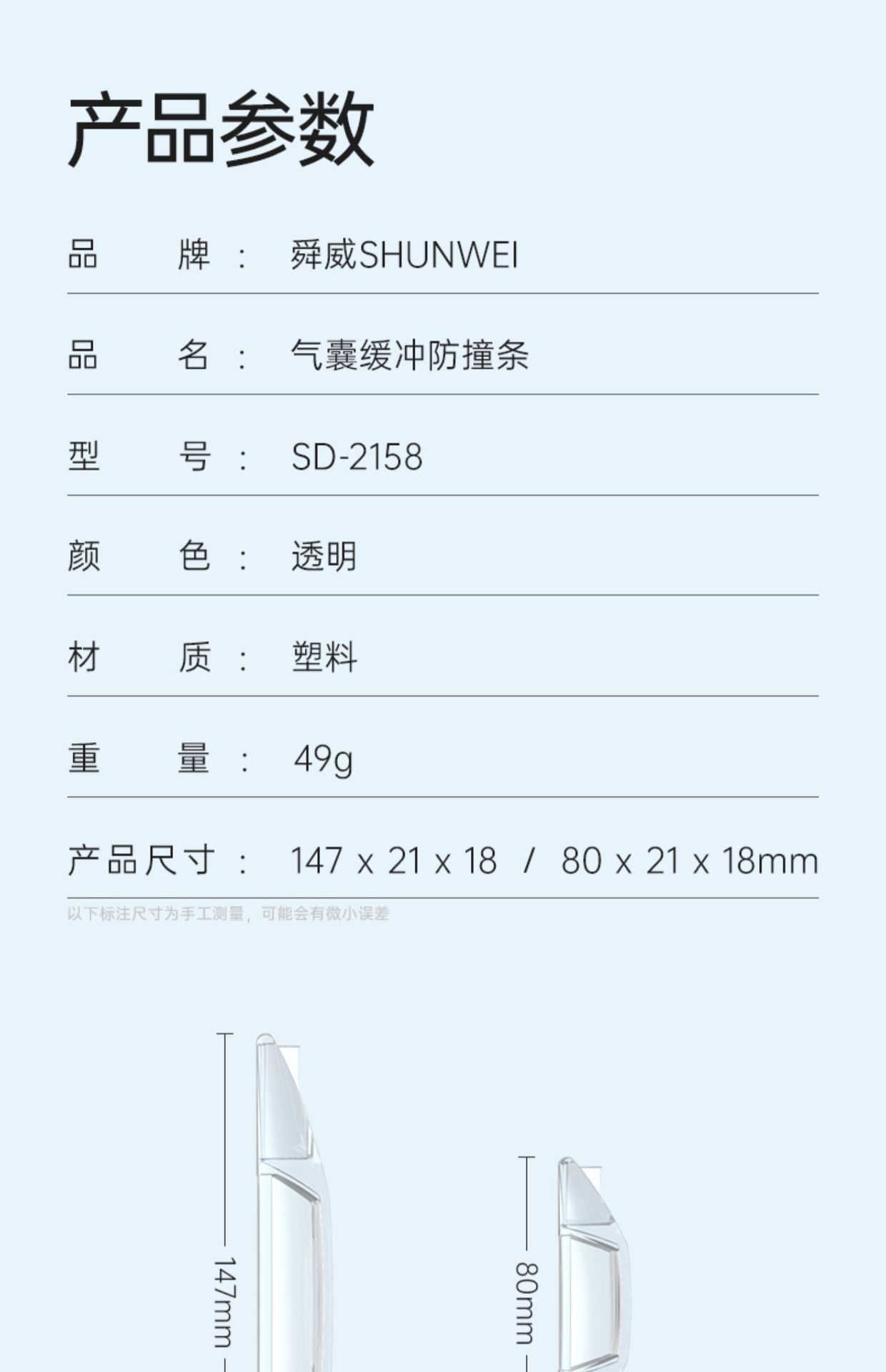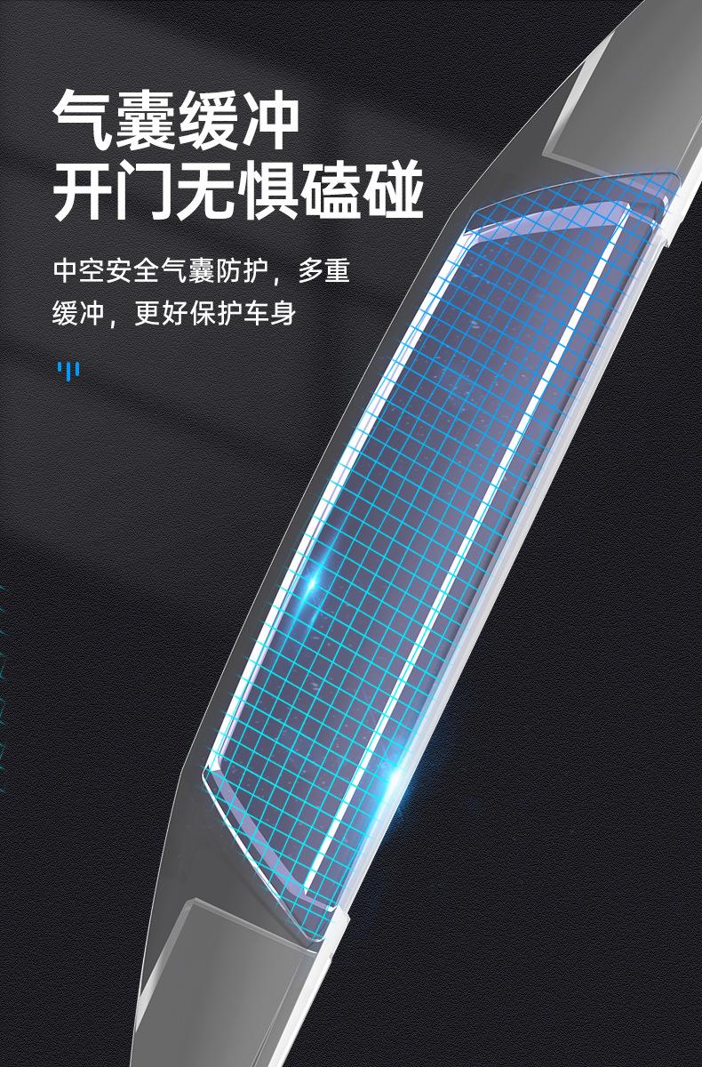 1, La parte central del producto está ahuecada, lo que puede aumentar eficazmente la fuerza de impacto a prueba de golpes:2, Diseño de ranura lateral para proteger el borde de la puerta contra daños;3, material suave, adecuado para la mayoría de los modelos.