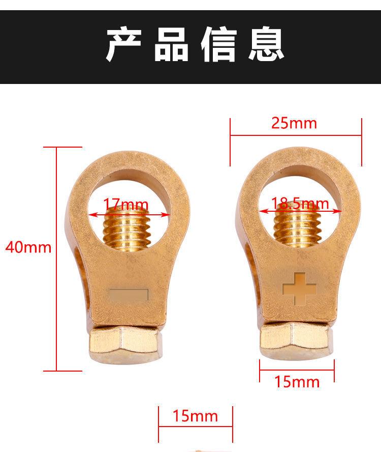 Clip de batería de cobre puro, un par de clips de batería de automóvil, conector de batería engrosado, línea de conexión, cabezal de pila, tarjeta