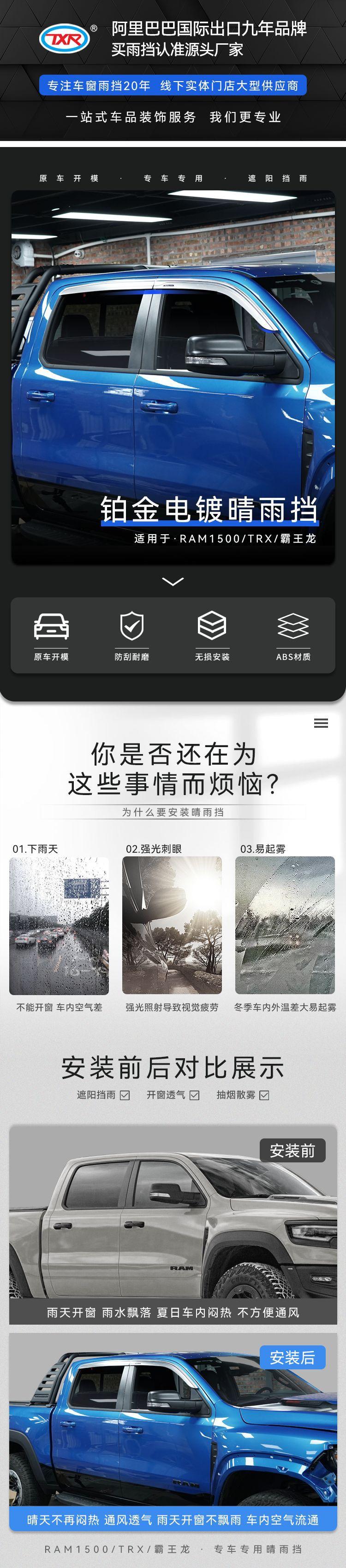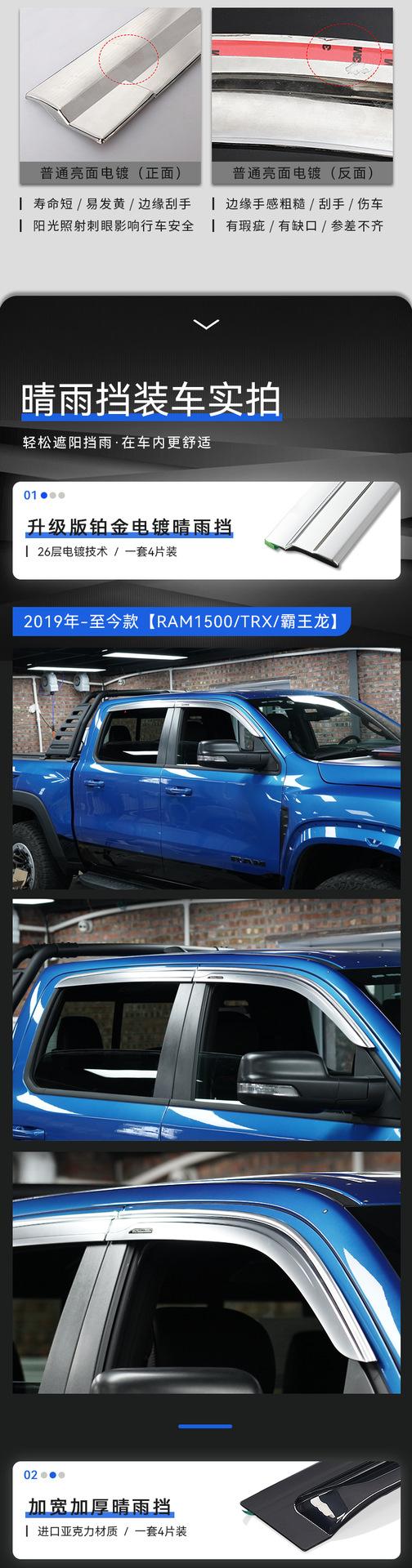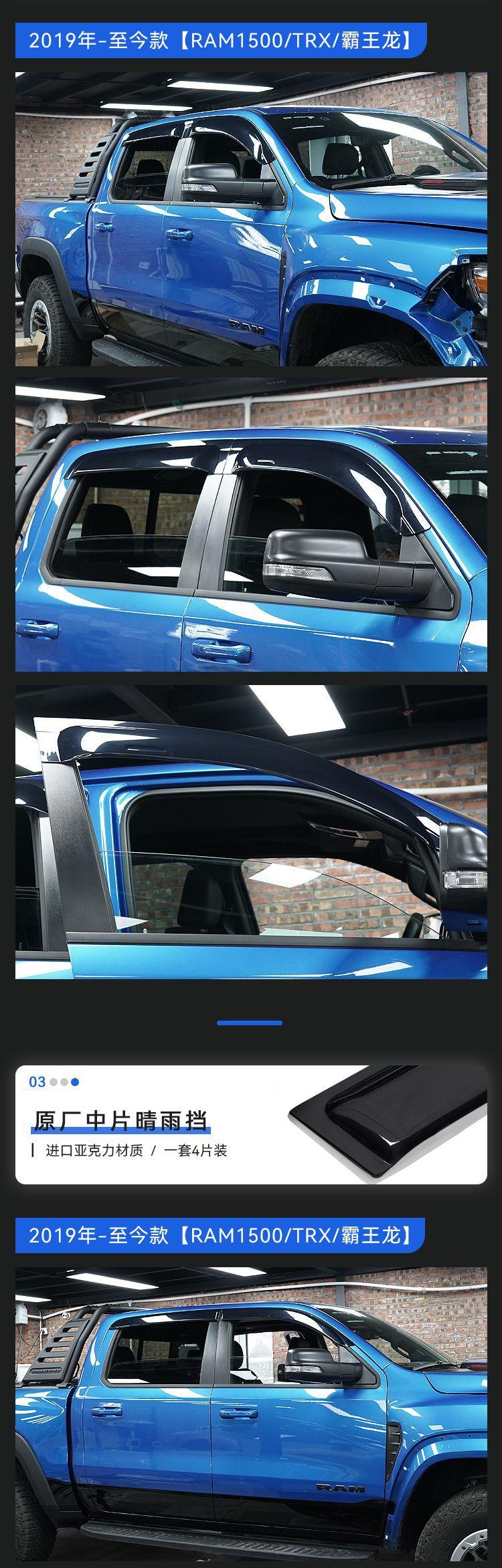 Compra Texinrui aplicable Dodge RAM1500 Tiranosaurio Rex coche protector de lluvia ventana de coche modificada ceja de lluvia accesorios protector de lluvia al por mayor en Joom.pro