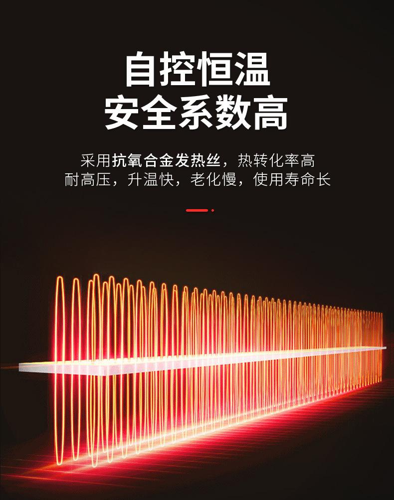 2. Utilizando alambre calefactor de aleación antioxidante, tiene alta tasa de conversión de calor, calentamiento rápido, envejecimiento lento y largo tiempo de uso.