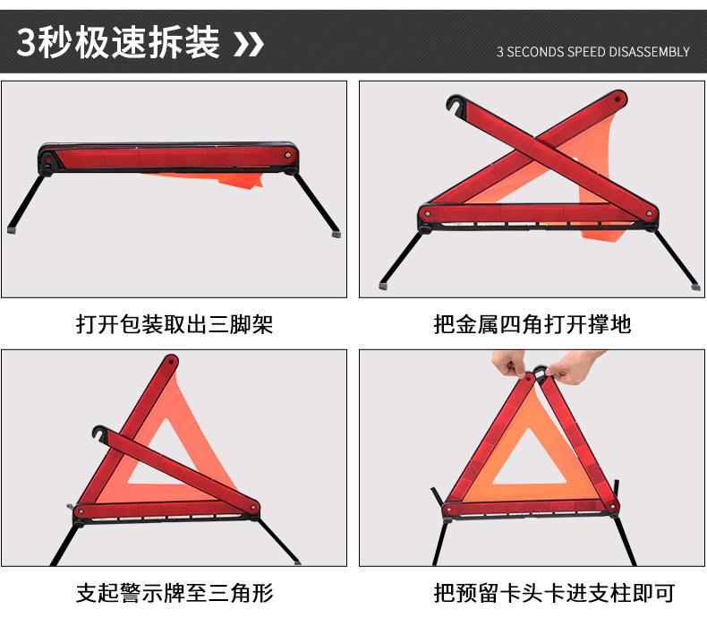 Al conducir en la carretera, es inevitable que necesites hacer una parada de emergencia al borde de la carretera. En este momento, esta cosa puede ser útil. Ya sea de día, de noche o cuando el clima es malo, simplemente colócalo a unos metros detrás del coche para advertir a los vehículos que vienen detrás con anticipación. Debido a que es reflectante, la señal de advertencia es muy brillante y llamativa por la noche, y se puede ver desde una larga distancia. La señal de advertencia triangular reflectante plegable se puede plegar cuando no está en uso, lo cual es conveniente para transportar. Cuando está en uso, se puede abrir y colocar detrás del coche. Es un producto de seguridad para ti cuando conduces.