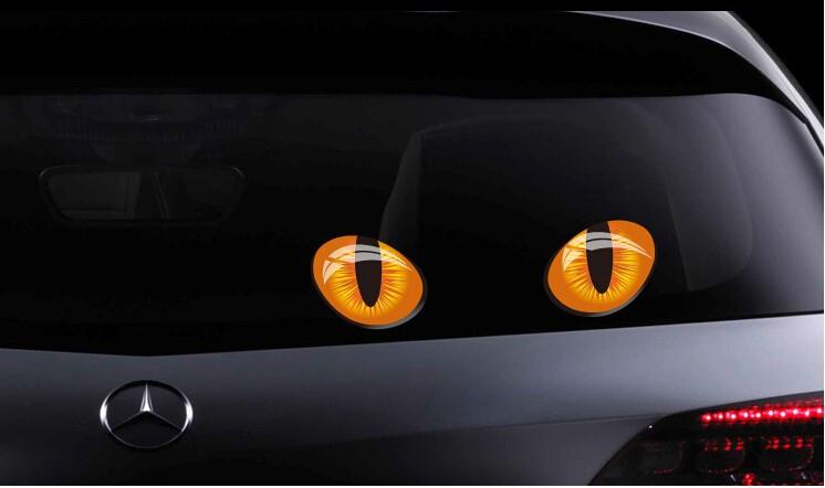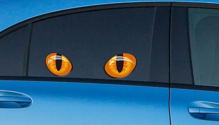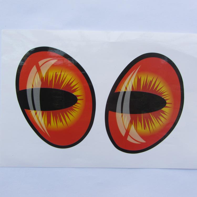Hecho con impresión de película PP, adhesivos ojo de gato impresos a todo color, adhesivos personalizados de simulación de ojo 3D. Adhesivos impermeables. Se pueden aplicar a vidrio, carrocería de coche, espejos retrovisores, etc.