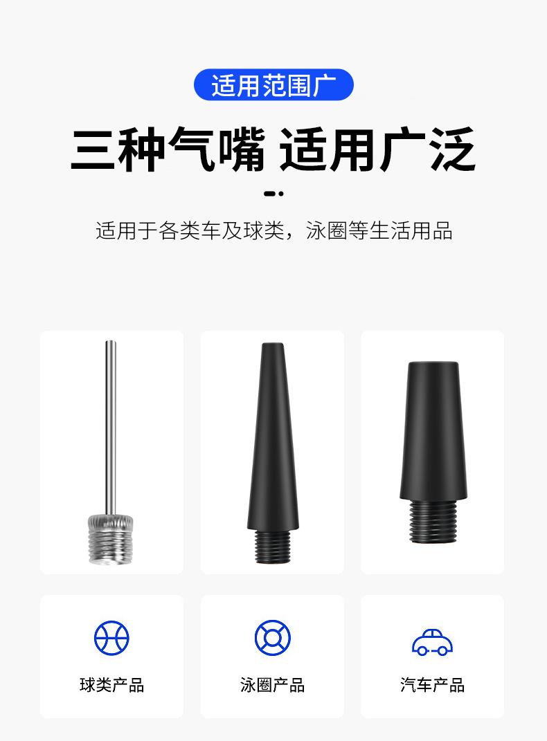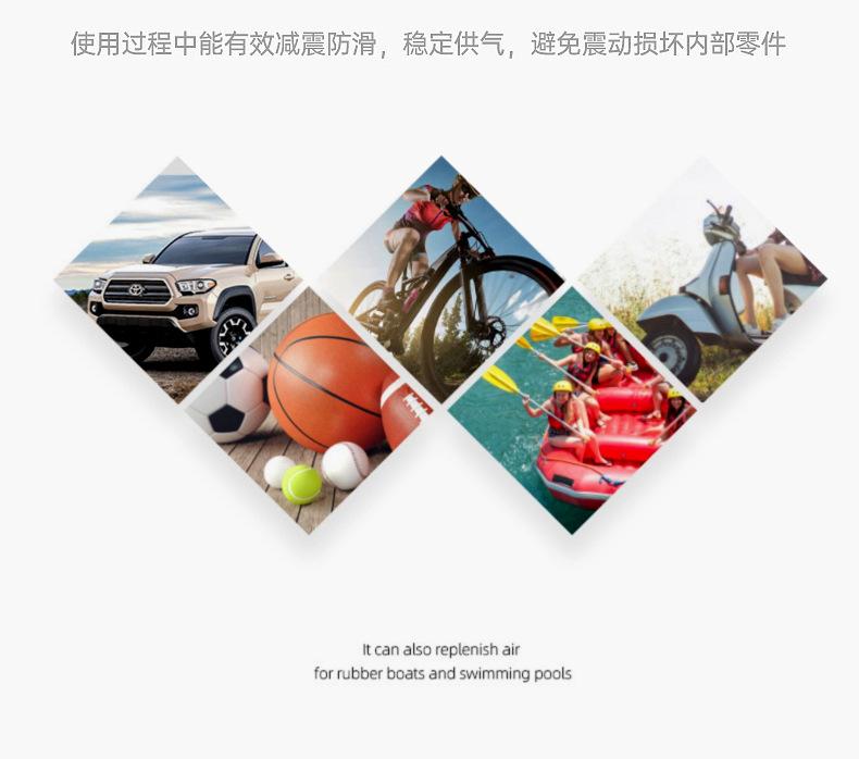 5Equipado con un juego completo de boquillas de inflado, se puede utilizar para inflar neumáticos, botes de goma, cojines de aire, juguetes inflables, pelotas y muchos otros propósitos.