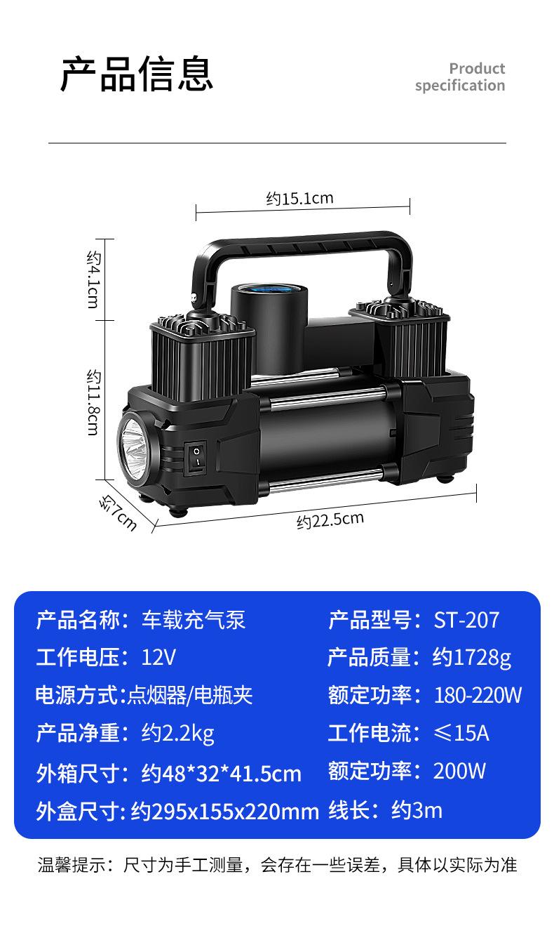 【ST-207B】Bomba de aire de doble cilindro-Pantalla digital con luz+herramienta+caja