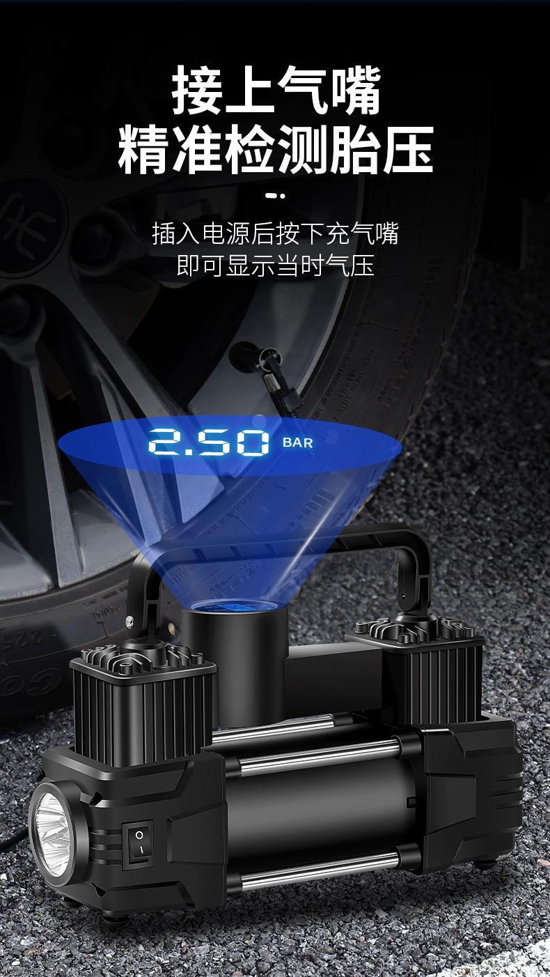 ST-207Montado en el vehículo12 V CCBomba de aire de doble cilindro, bomba de aire para neumáticos de automóvil de metal, bomba de aire de alta potencia