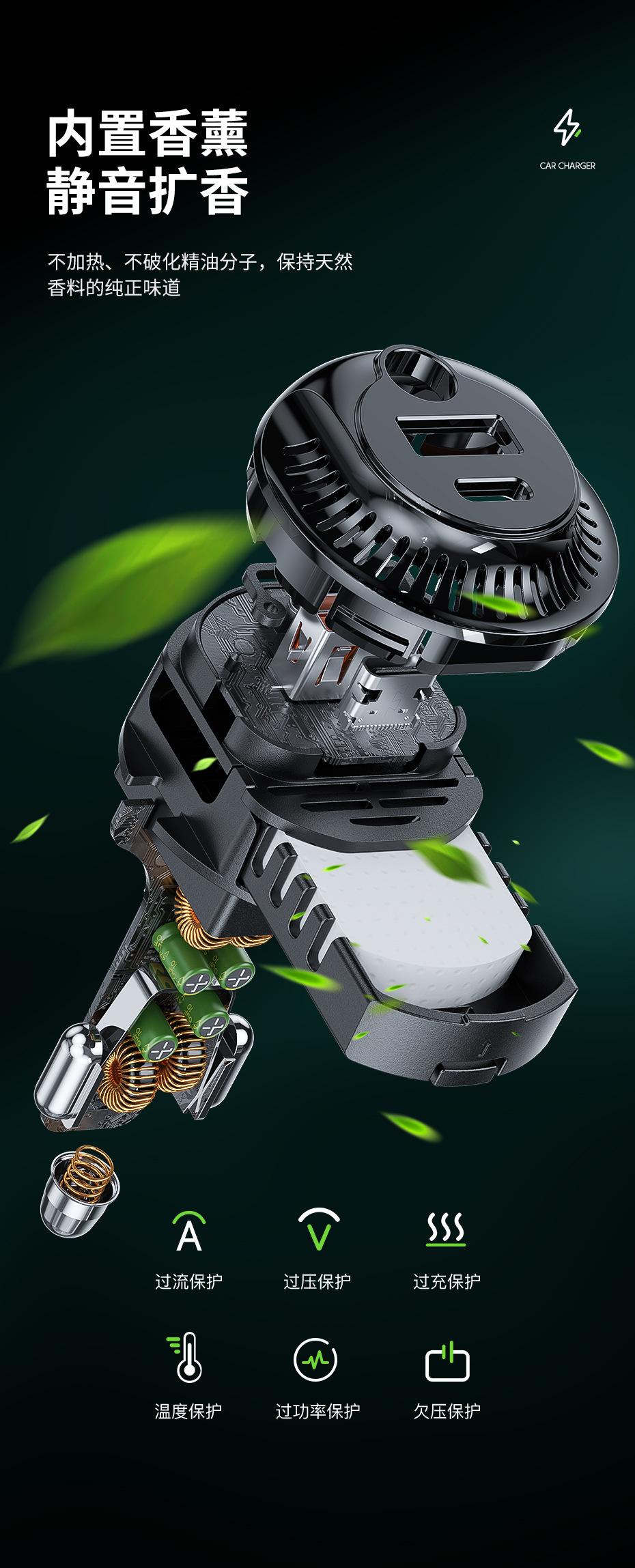 | 【Nombre del producto】: Cargador de coche para aromaterapia de 130W |