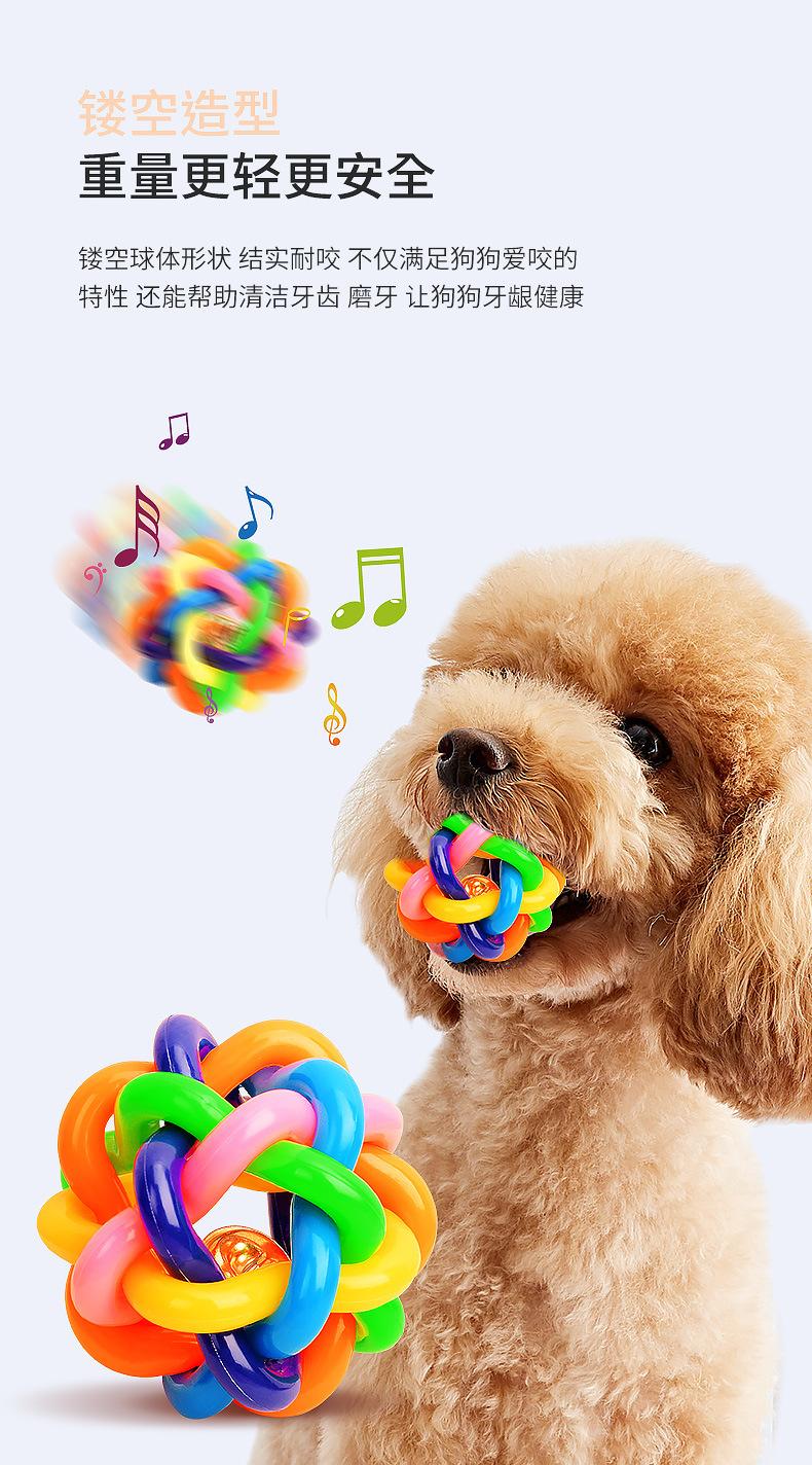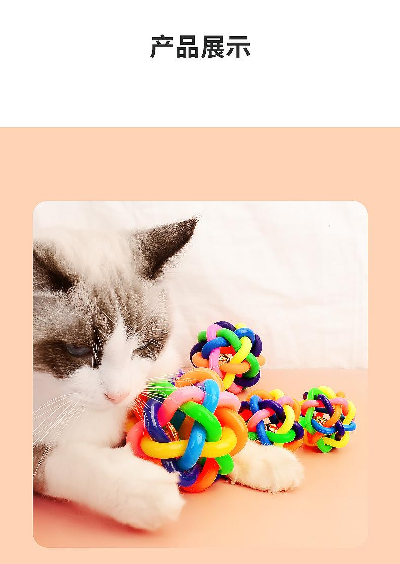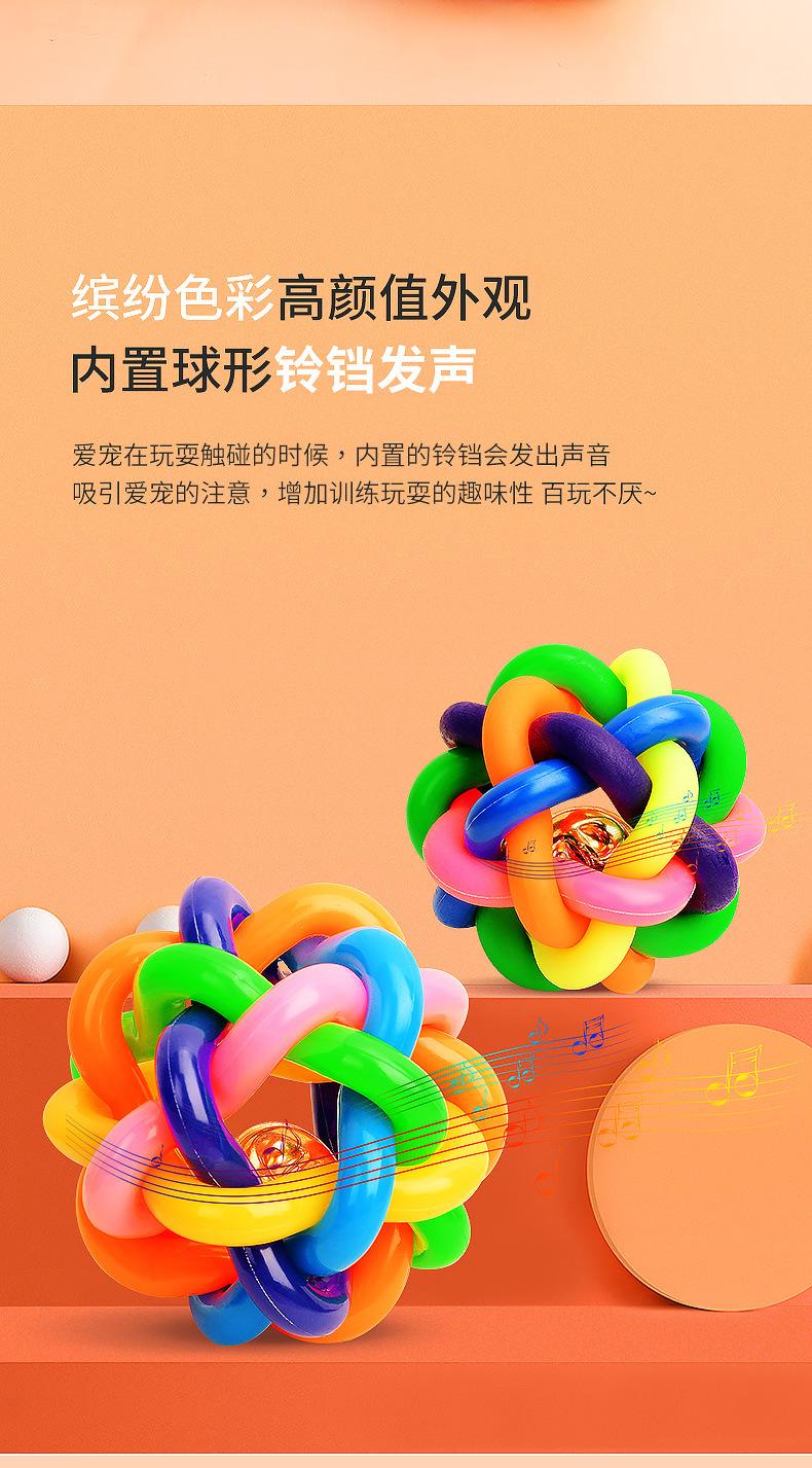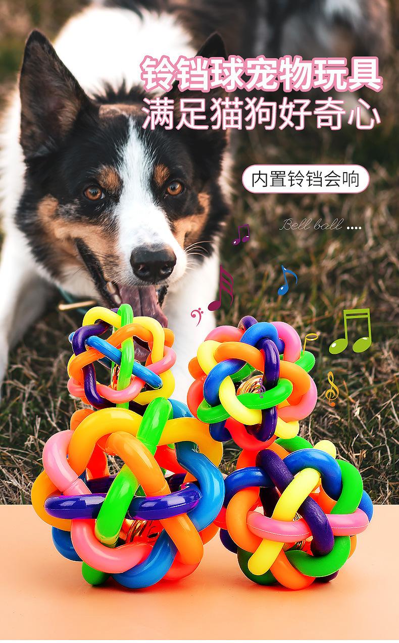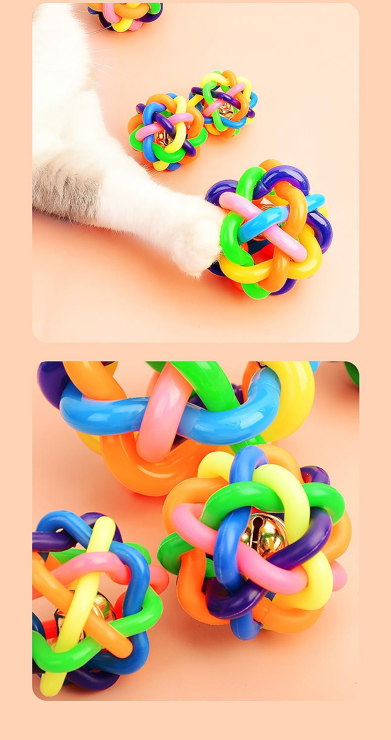 Compra Pelota campana de TPR para mascotas colorida tejida arcoíris juguete para gatos pelota de goma resistente a mordeduras para perros suministros para mascotas al por mayor en Joom.pro