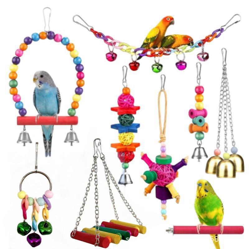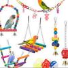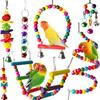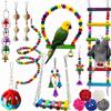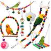 Juguete para morder de loro, juguete para pájaros, escalera, columpio, campana simple, cuerda pequeña, juego de 6 piezas