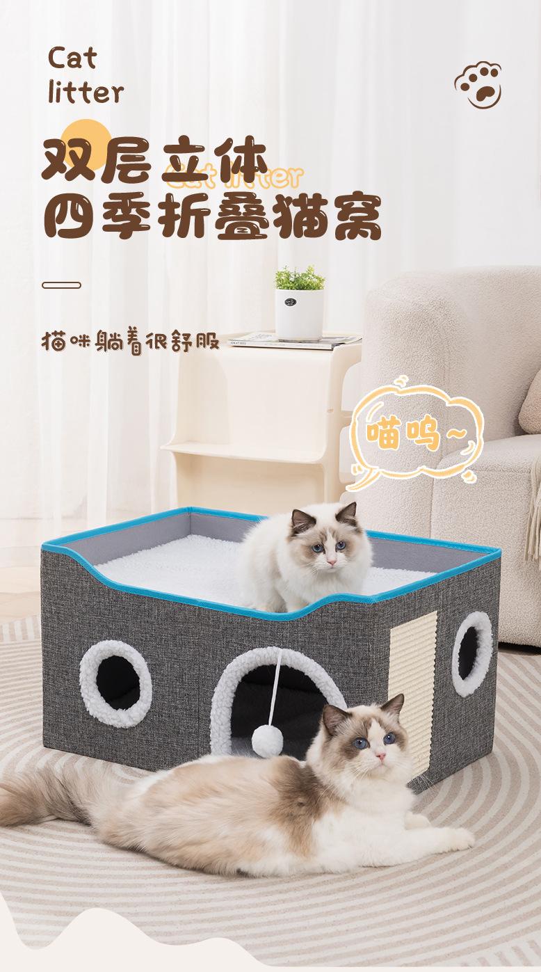 Venta caliente transfronteriza, casa cálida para gatos, cama universal de doble capa para cuatro estaciones, habitación cerrada para gatos en invierno, suministros para mascotas