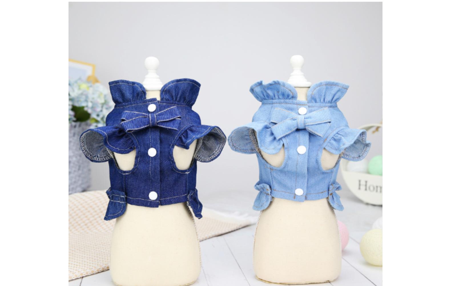 Ropa para mascotas, chaleco para perro, sin cuerda de tracción, ropa para gato, de mezclilla, 22