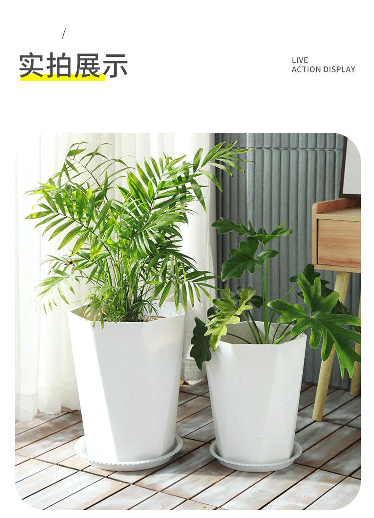 Maceta de flores extragrande con rosca gruesa de resina de porcelana de imitación blanca y negra, maceta con bandeja para plantas de bonsái, maceta grande de plástico
