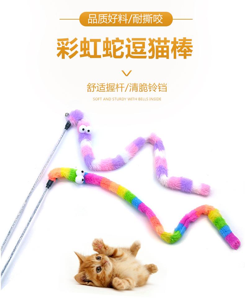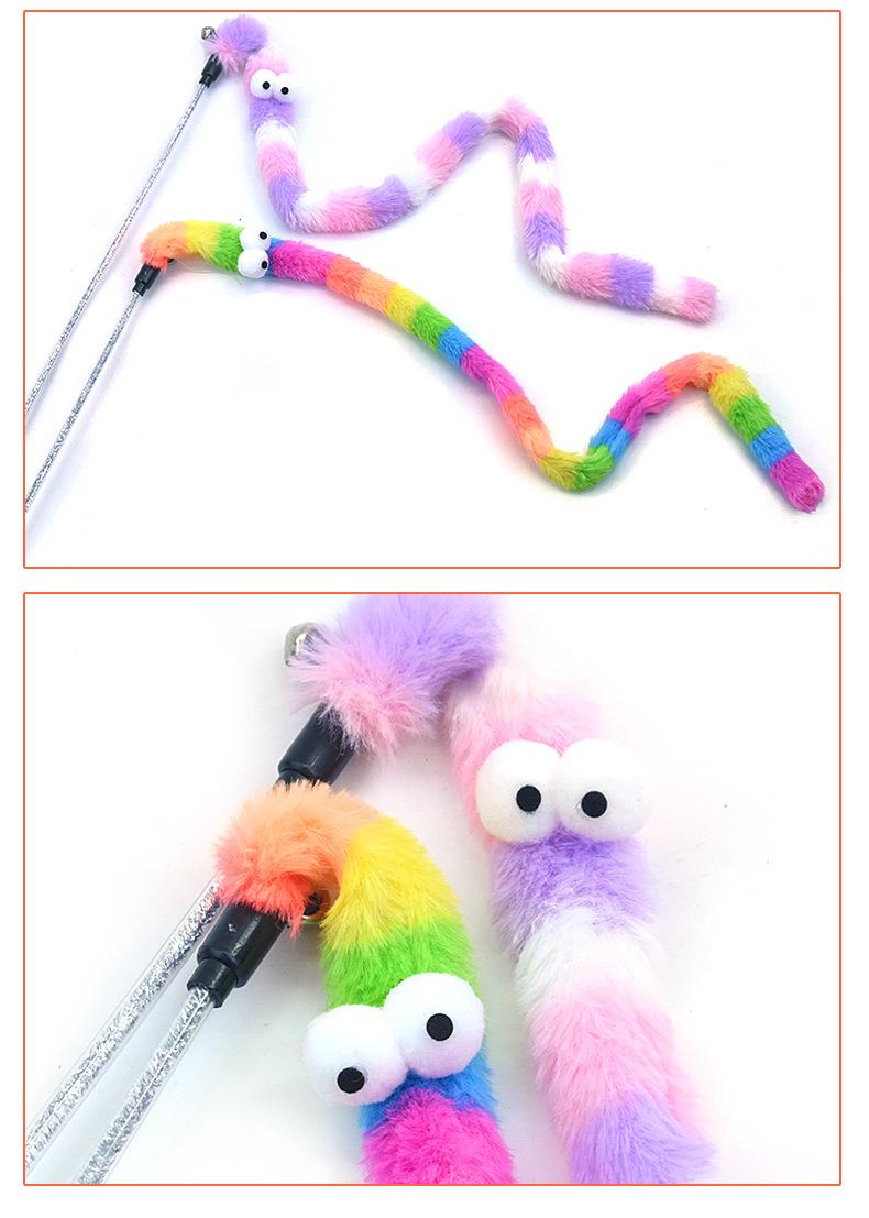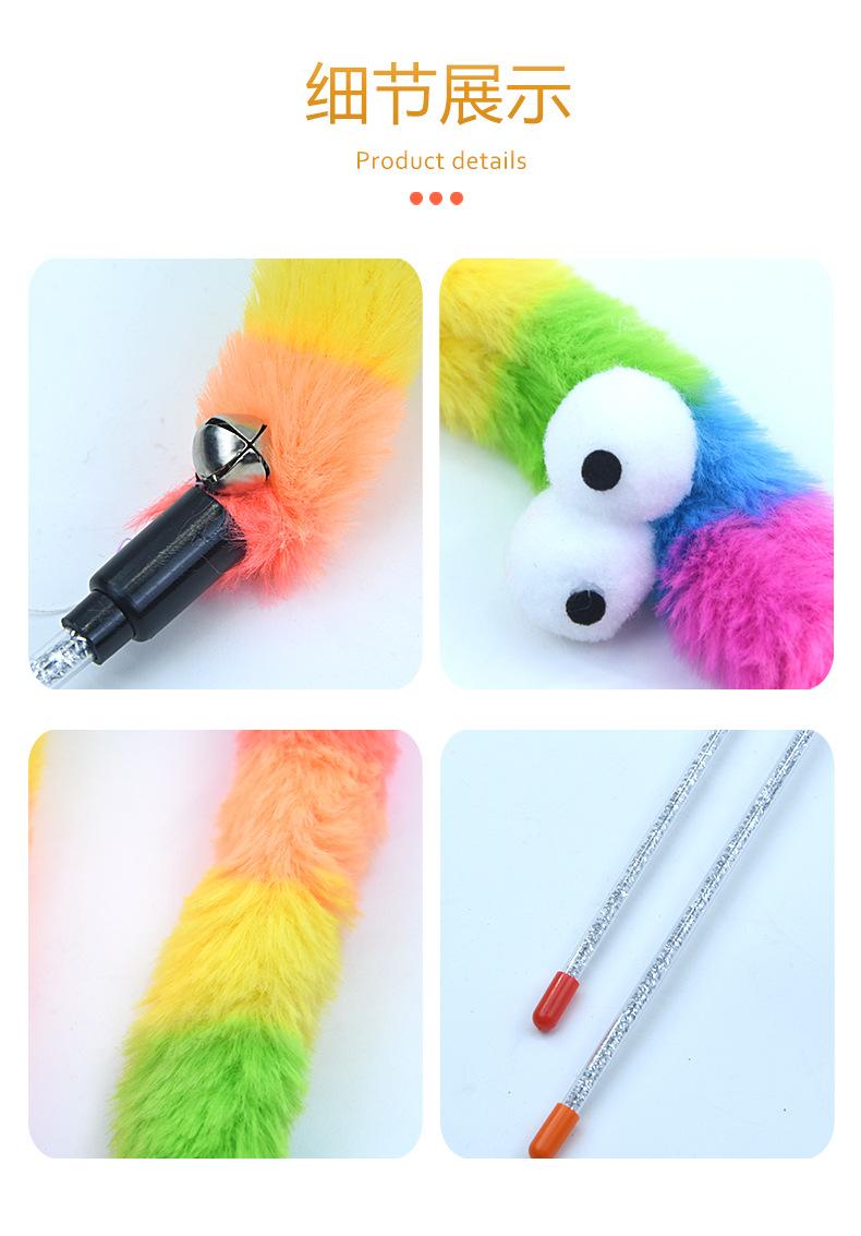 | Nuevo juego de juguetes para gatos transfronterizos, caña de pescar con plumas de colores, campana de oruga y divertido palo para gatos con cabeza reemplazable. |
