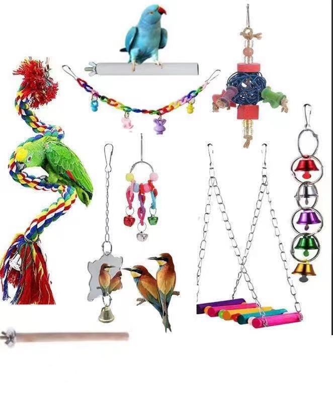 Juego de 9 piezas Amazon transfronterizo más vendido juguete para loro juego de combinación de juguetes para loro accesorios para jaula de pájaros