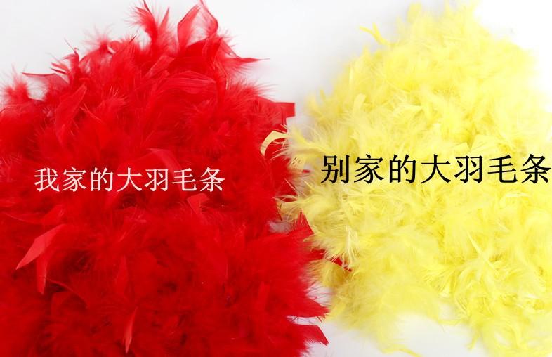 Las plumas de pavo y avestruz que producimos en nuestra fábrica son plumas naturales puras importadas. Cada tira de plumas mide 2 metros de largo, mientras que otros fabricantes producen menos de 2 metros y 2 yardas. La longitud y el tamaño de cada tira no son iguales a los de las plumas talladas en un molde. Al ser naturales, es normal que los productos de plumas presenten pequeños defectos (por ejemplo, durante el envío exprés, la flor de la pluma se separa ligeramente y las lentejuelas se caen un poco). Tras recibir el producto, cuelgue o coloque las plumas de forma natural para que se estiren y logren el efecto de plumas "flotantes".