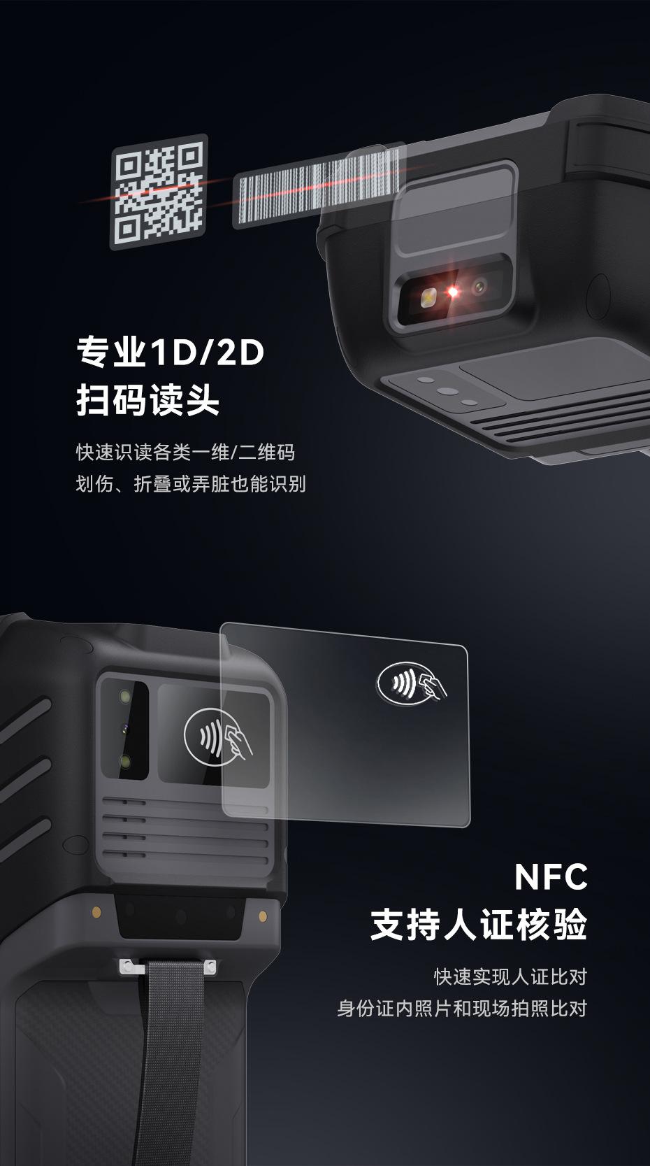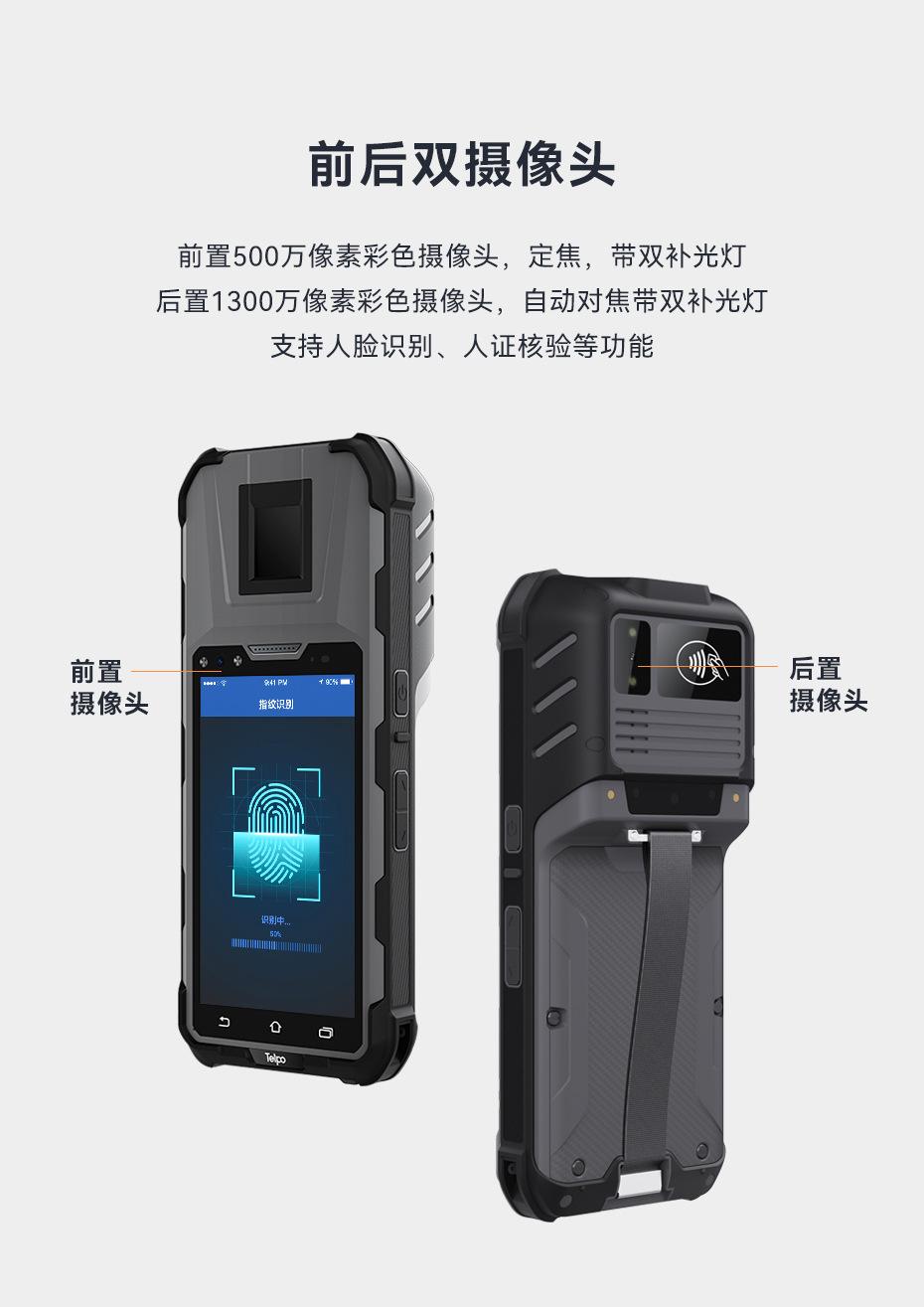Para mejorar la precisión de la verificación de identidad y proteger la seguridad de los datos en el dispositivo, Guangdong Tianbo Handheld Wireless Police Communication S5 utiliza una cámara frontal de 5 megapíxeles + una cámara trasera de 13 megapíxeles, con módulos integrados de reconocimiento NFC y adquisición capacitiva de huellas dactilares, que pueden realizar reconocimiento facial, reconocimiento de tarjeta de identificación y reconocimiento de huellas dactilares. La imagen capturada tiene alta resolución, lo que permite realizar eficazmente la comparación persona-documento y la verificación de identidad. Tiene las características de alta antifalsificación, estabilidad y fiabilidad, y es más conveniente y seguro de usar.