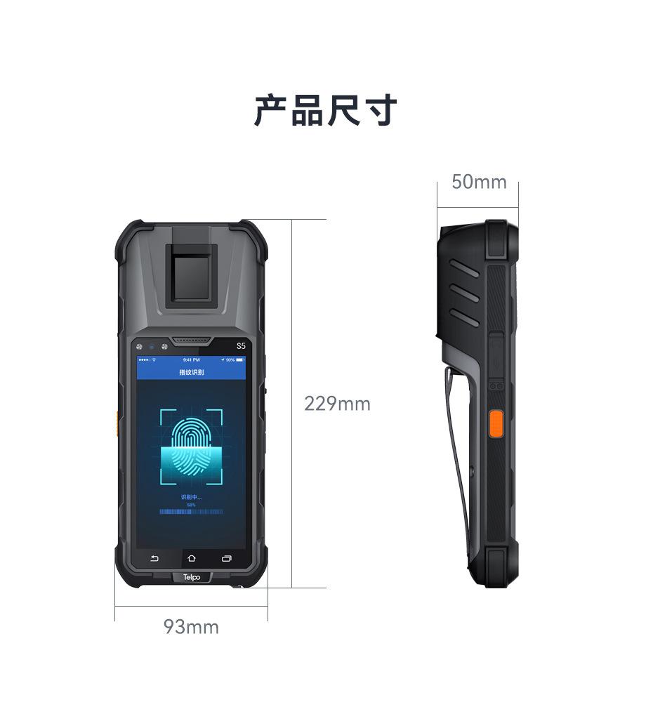 El terminal portátil de verificación de identidad Telpo S5 se actualiza con un potente procesador de 8 núcleos, un sistema Android 9.0 seguro y estable, y una pantalla táctil de 5.5 pulgadas. Es compacto y ligero, con actualizaciones integrales de rendimiento, consumo de energía muy reducido y multitarea rápida y fluida.