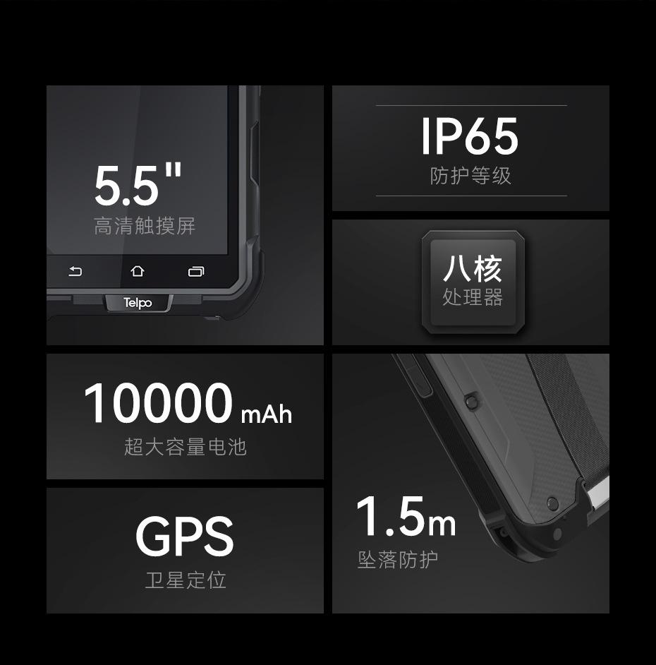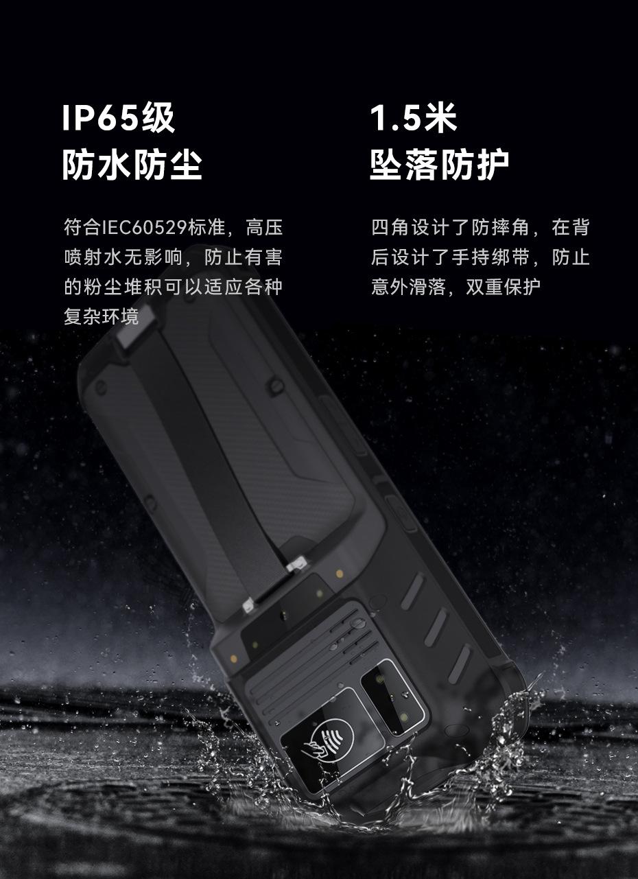 El terminal portátil móvil inteligente de recolección de datos Telpo S5 adopta grado industrial a prueba de tres, lo cual es más conveniente para uso en exteriores. La prueba de protección IP65 previene completamente la entrada de polvo, y también puede resistir salpicaduras de líquidos, cumpliendo con los requisitos de impermeabilidad para interiores y exteriores. Protección contra caídas de 1.5 metros, puede resistir caídas desde una altura al suelo, con diseño de refuerzo en las cuatro esquinas, resistencia a caídas y durabilidad mejoradas, puede adaptarse a diversos entornos hostiles, y el sólido diseño industrial le permite operar de manera confiable en diversos entornos hostiles como humedad, alta temperatura, polvo, baja temperatura y luz intensa.