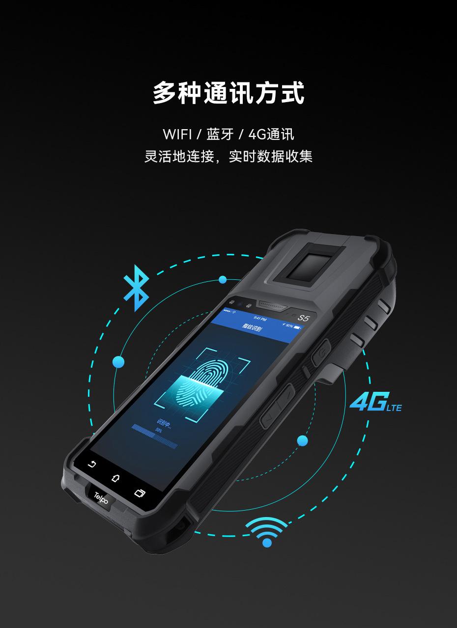 El terminal móvil inteligente Guangdong Tianbo S5 puede elegir múltiples métodos de comunicación como WIFI, comunicación 4G, Bluetooth, etc., mejorar la velocidad de Internet, facilitar la construcción temporal de escenas de diversos entornos, y es conveniente y sin interrupciones. Incluso si no hay red, puede funcionar a través de WIFI, realizar la transmisión de datos en escenas de larga distancia y facilitar la trazabilidad de la gestión y el análisis estadístico. Es adecuado para escenas como fabricación industrial, industria financiera, seguridad pública y servicios públicos.
