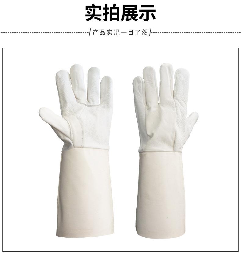 Guantes Largos de Soldadura al por Mayor Hechos de Piel de Vacuno Flor para Soldadura por Arco Argón, Protección Laboral y Resistencia al Calor