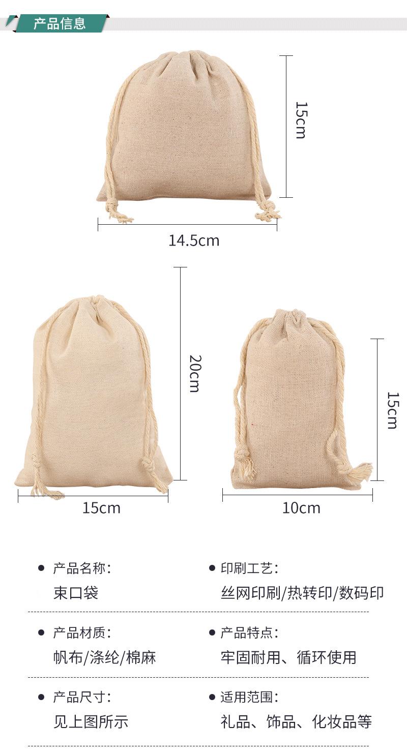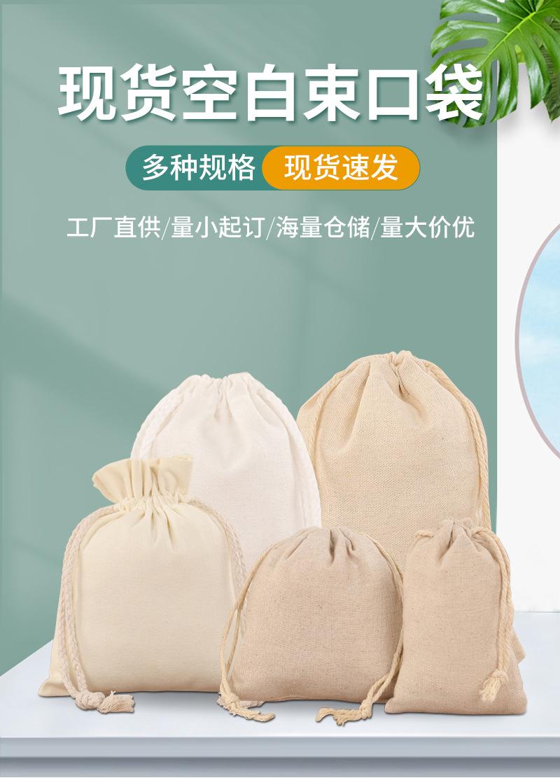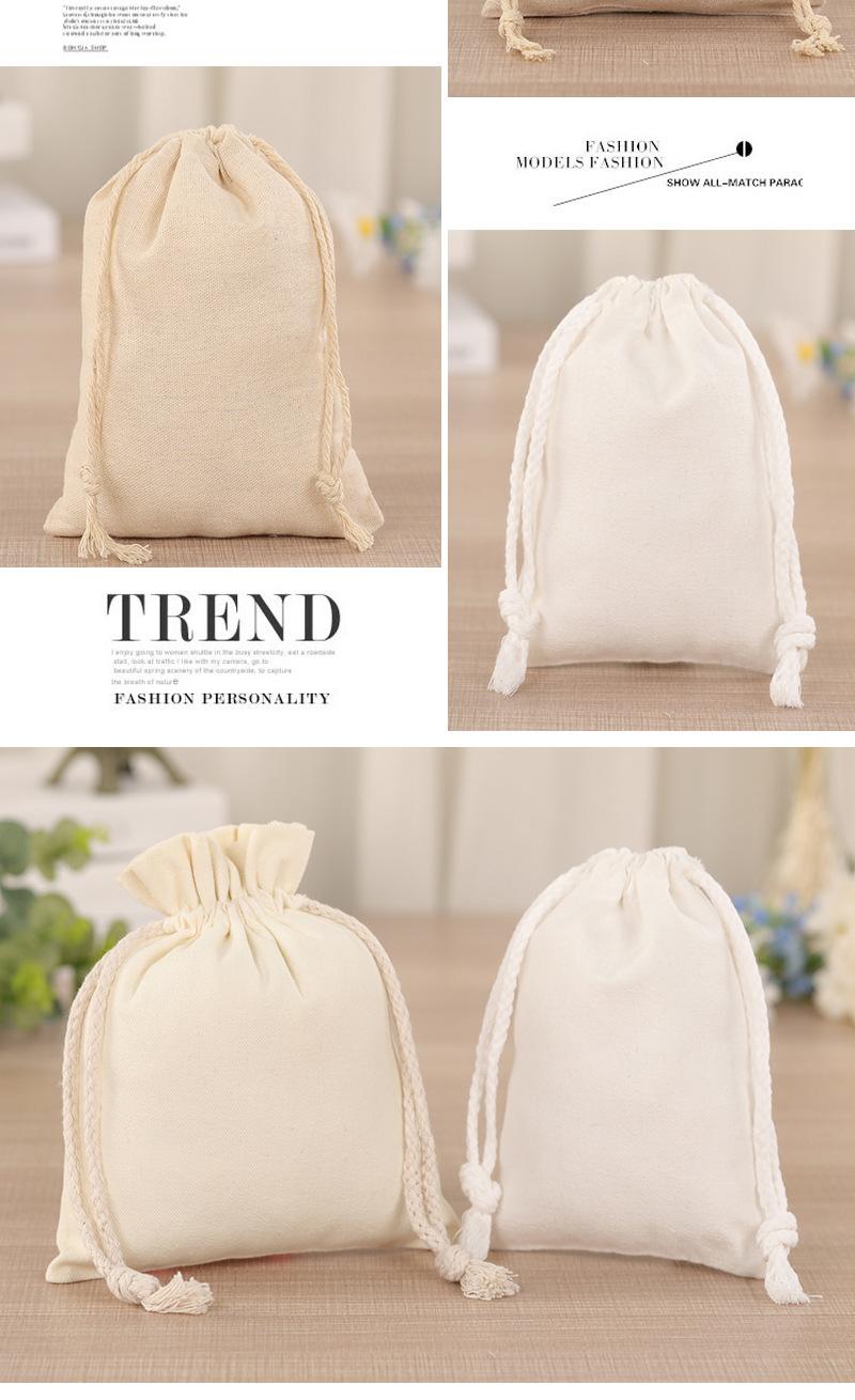 Bolsa de arroz en blanco con cordón, de lona, de algodón y lino, para guardar, portátil, para regalo, con logotipo imprimible