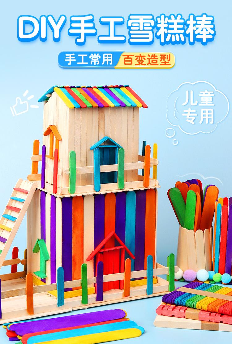 Palitos de helado de colores, palitos de paleta, juguetes creativos hechos a mano, modelo de material, palitos de madera pequeños